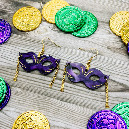 Mardi Gras Purple Mask Dangles