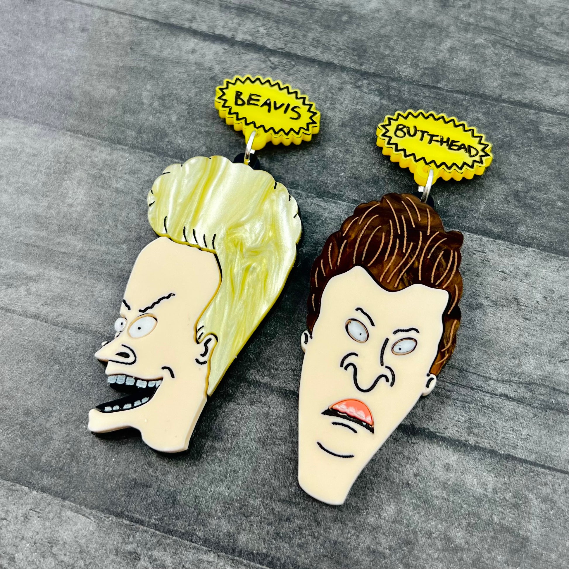 Note about backing options: Available as Posts, hooks, Clip Ons or Brooch. If you order on hooks or as a brooch, it will not include the yellow Beavis and Butthead on top. For the Brooch, you will receive 1 earring which will be converted using a pin instead of earring hardware, not included.