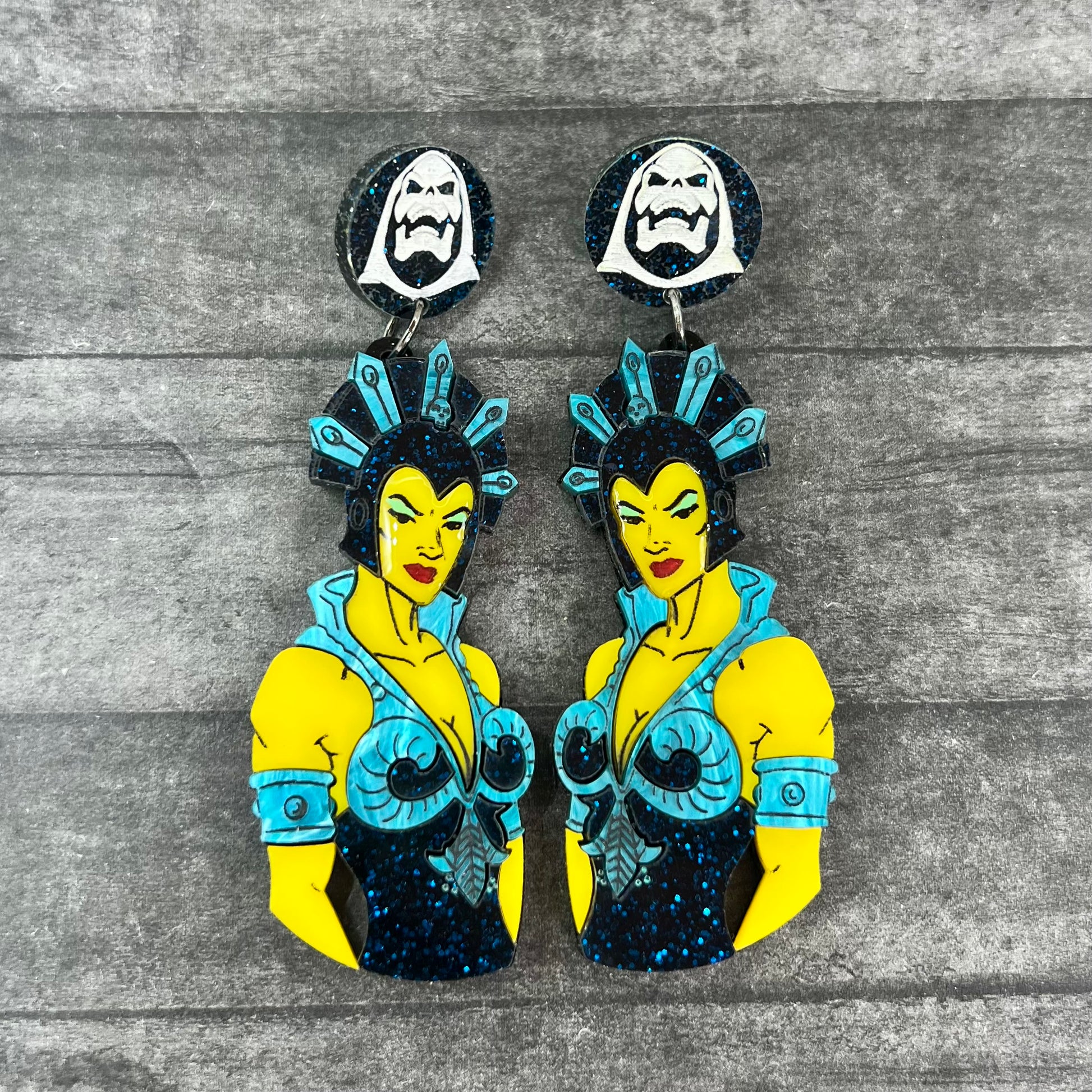 Evil-Lyn from Masters of the Universe, cut from various glossy and glittery acrylics! Perfect for any 80s cartoon or toy lover!