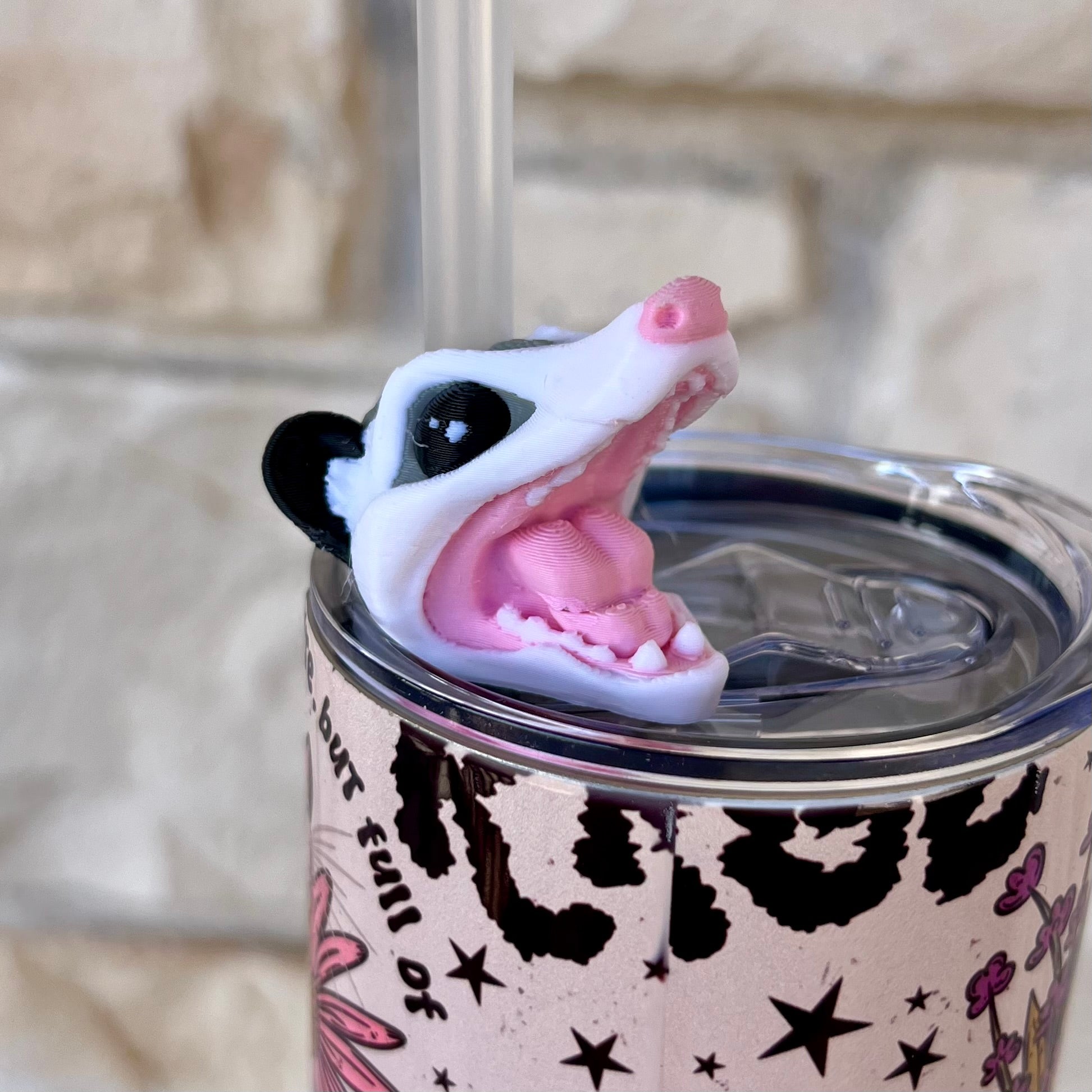 Opossum Straw topper! Measured 35mm tall. You have the choice of a standard straw opening, or a larger Stanley straw opening.