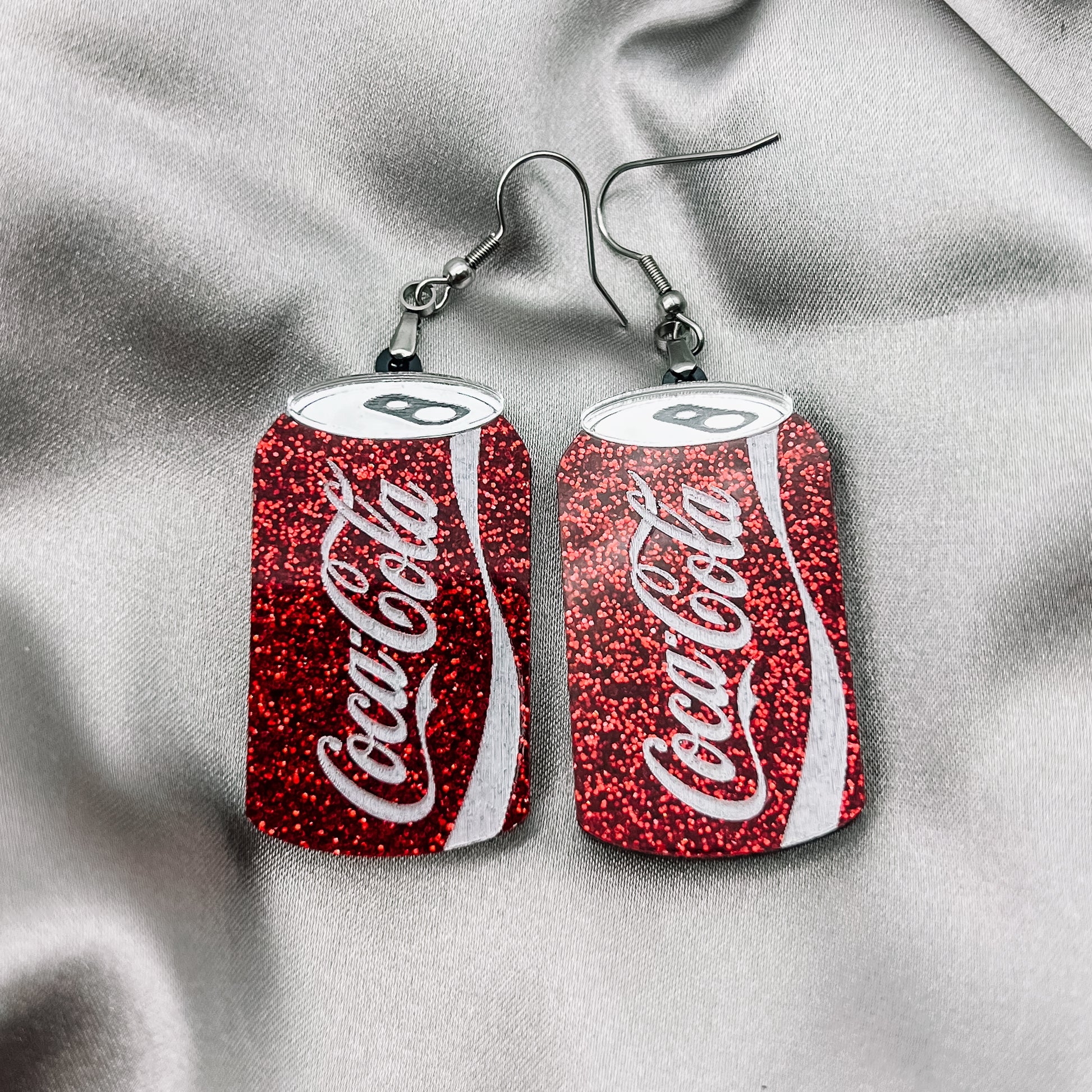 These are sooo incredible! 🤩 Coke can earrings made from sparkly red glitter acrylic! Showstoppers for sure!