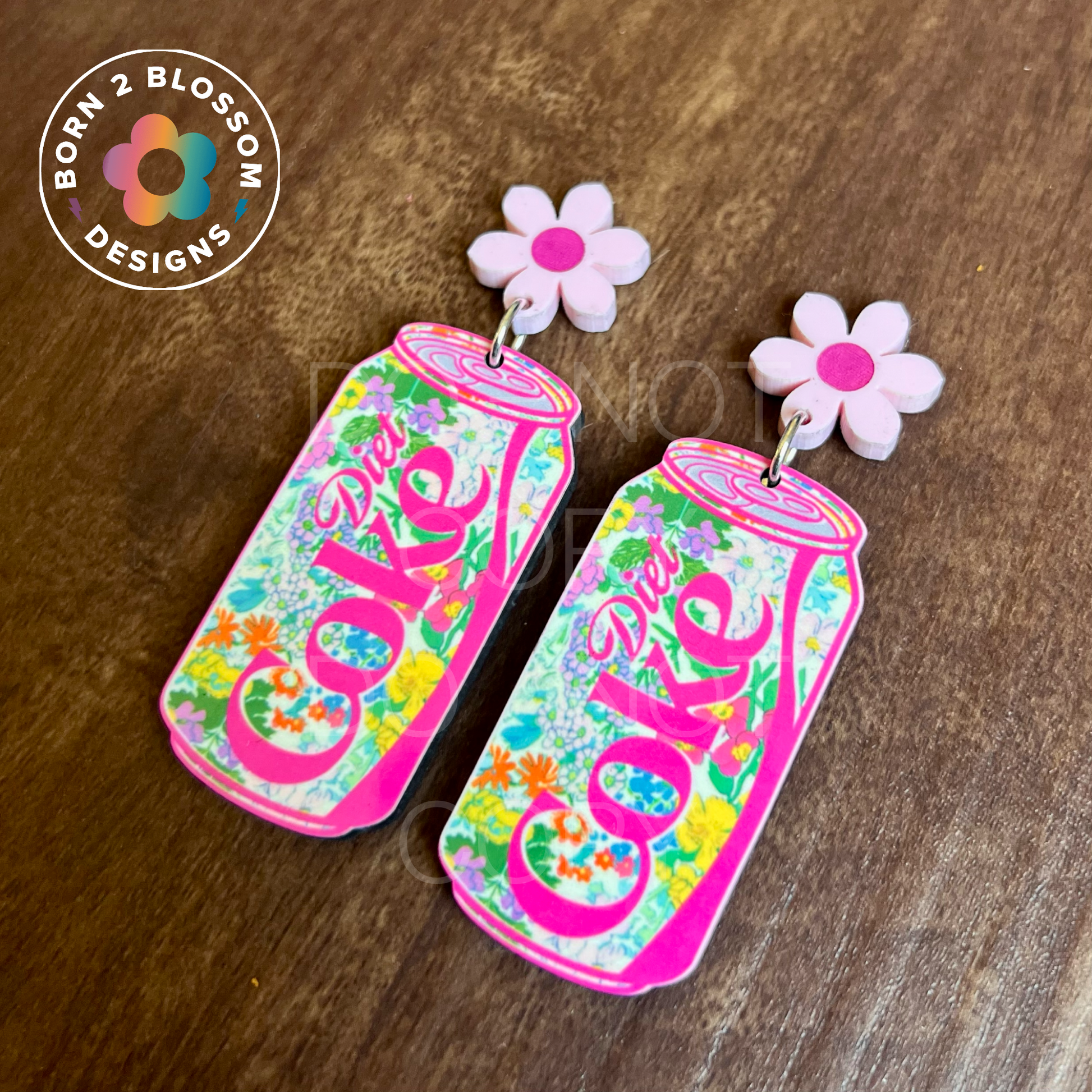 Diet Coke cans with a floral pattern. Perfect for spring and summer! Sublimated on Unisub.