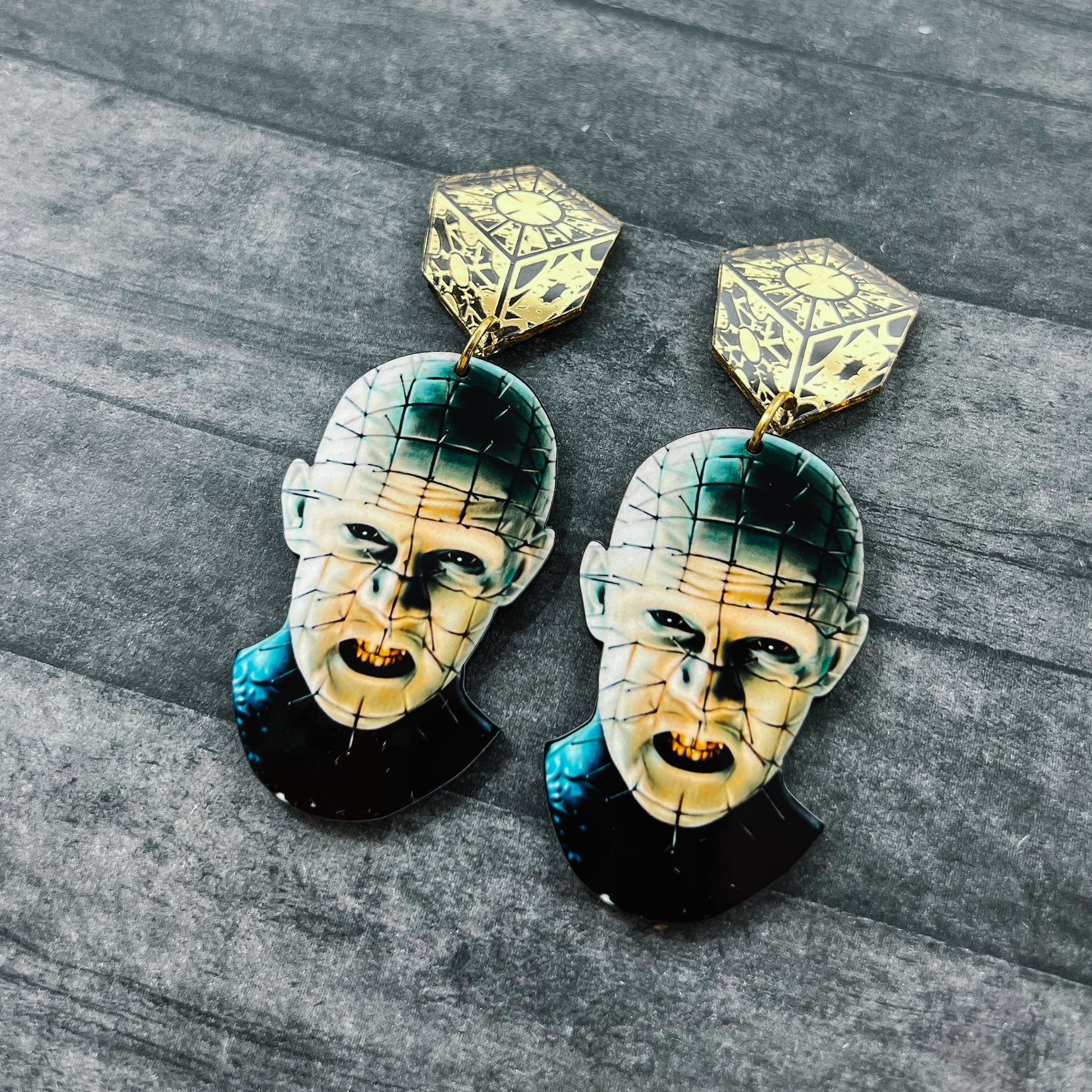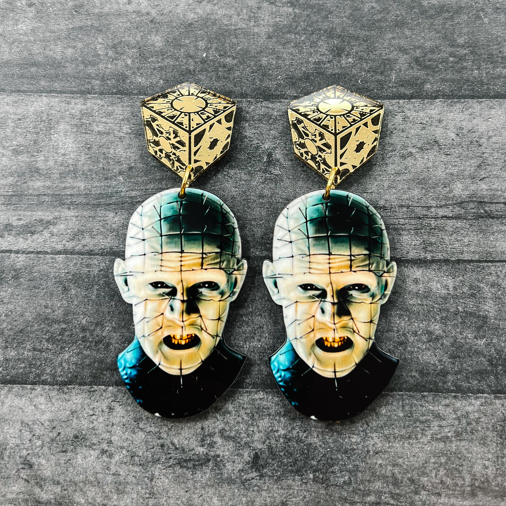 Pinhead from Hellraiser! These are sublimated on Unisub and paired with a gold mirror puzzle box post.