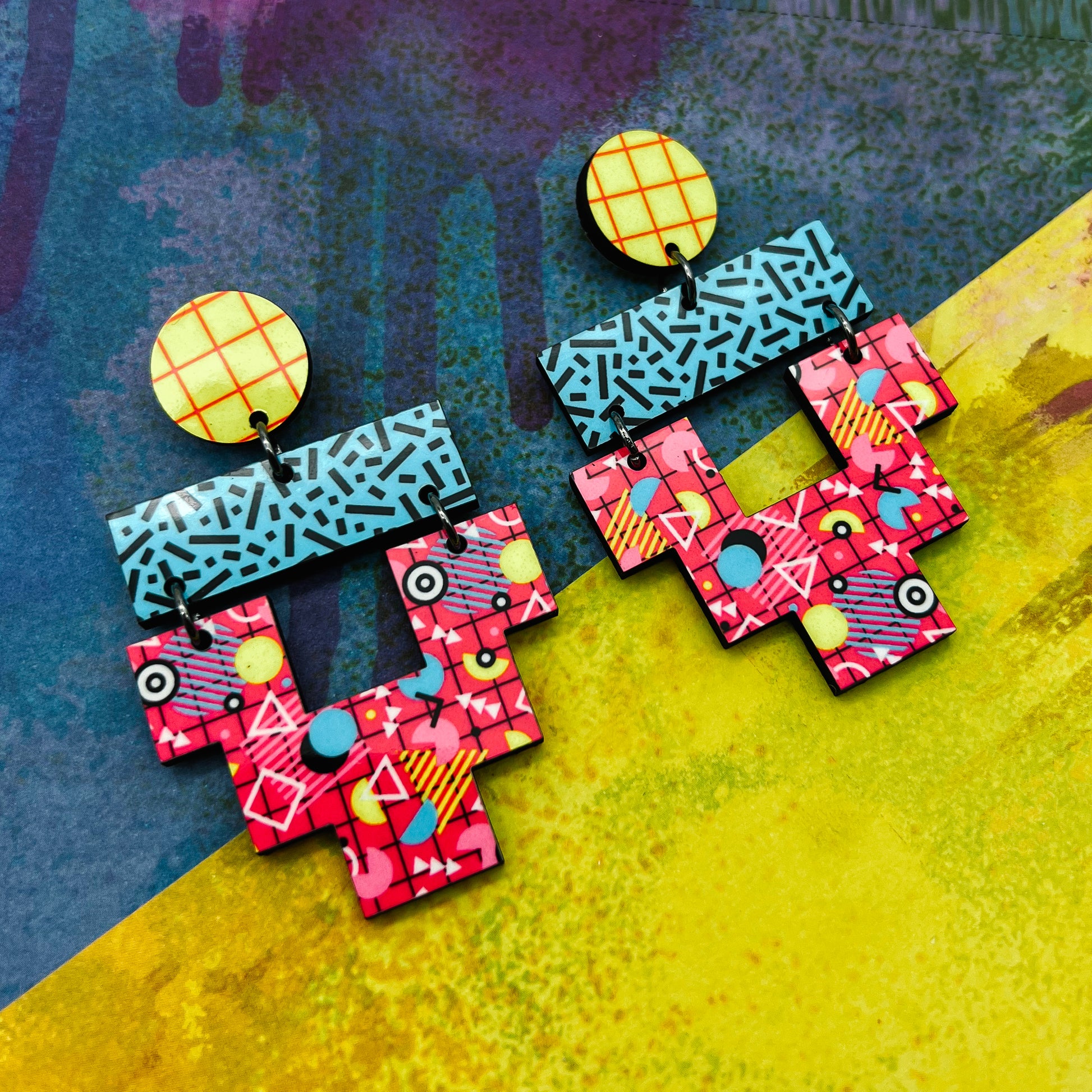 This listing is for 1 pair 90s pattern mixed earrings cut and sublimated on unisub, front and back. 90s fashion is coming back in style and these would make the perfect accessory!
