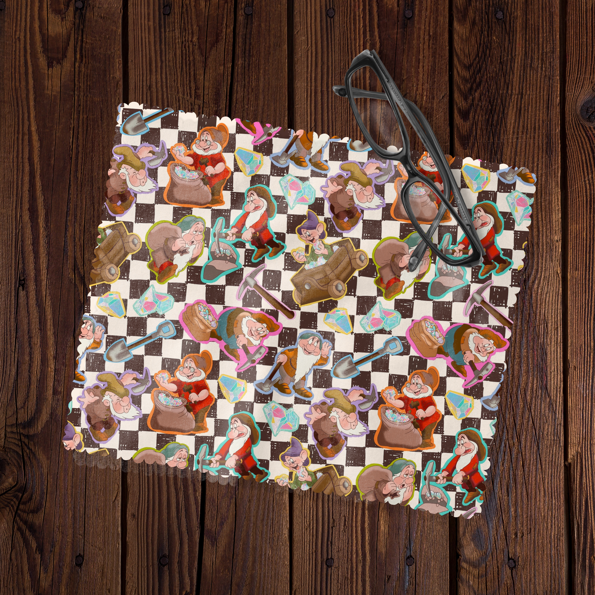 Checkered seven dwarves from Snow White eyeglass cleaning cloth!