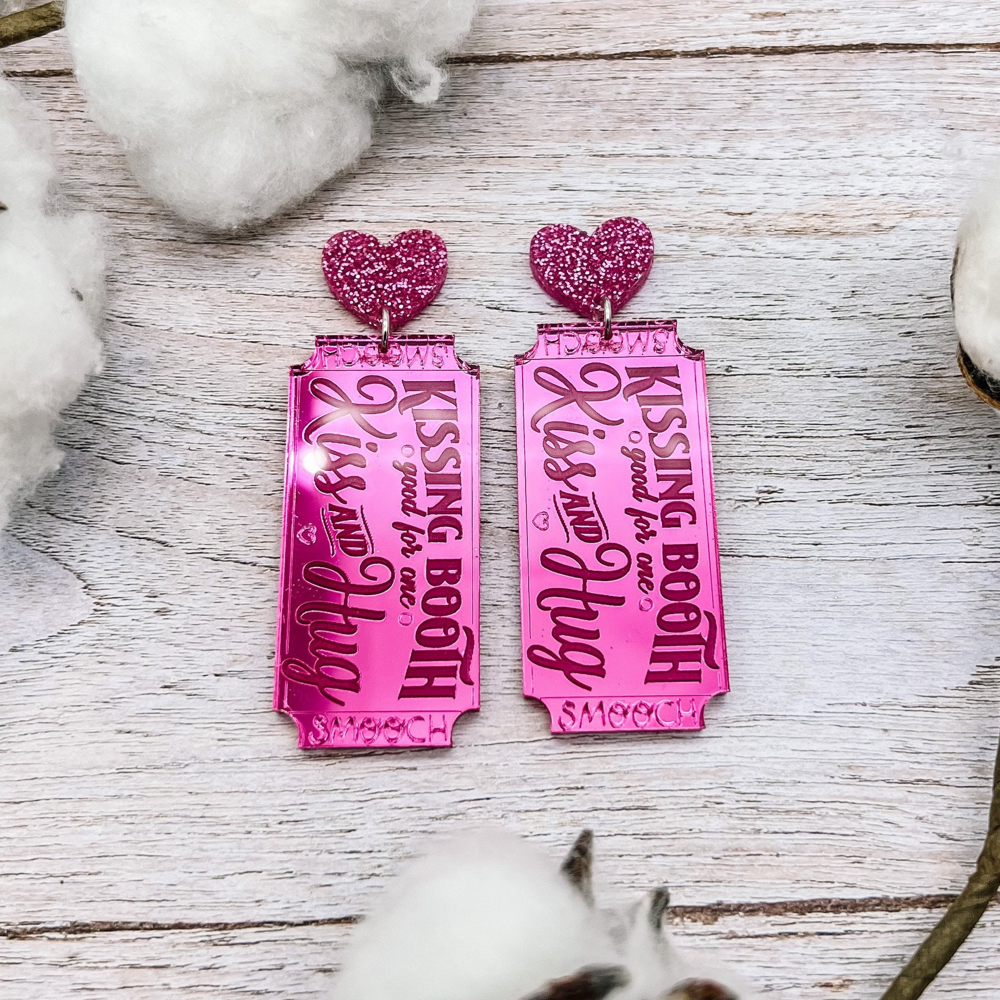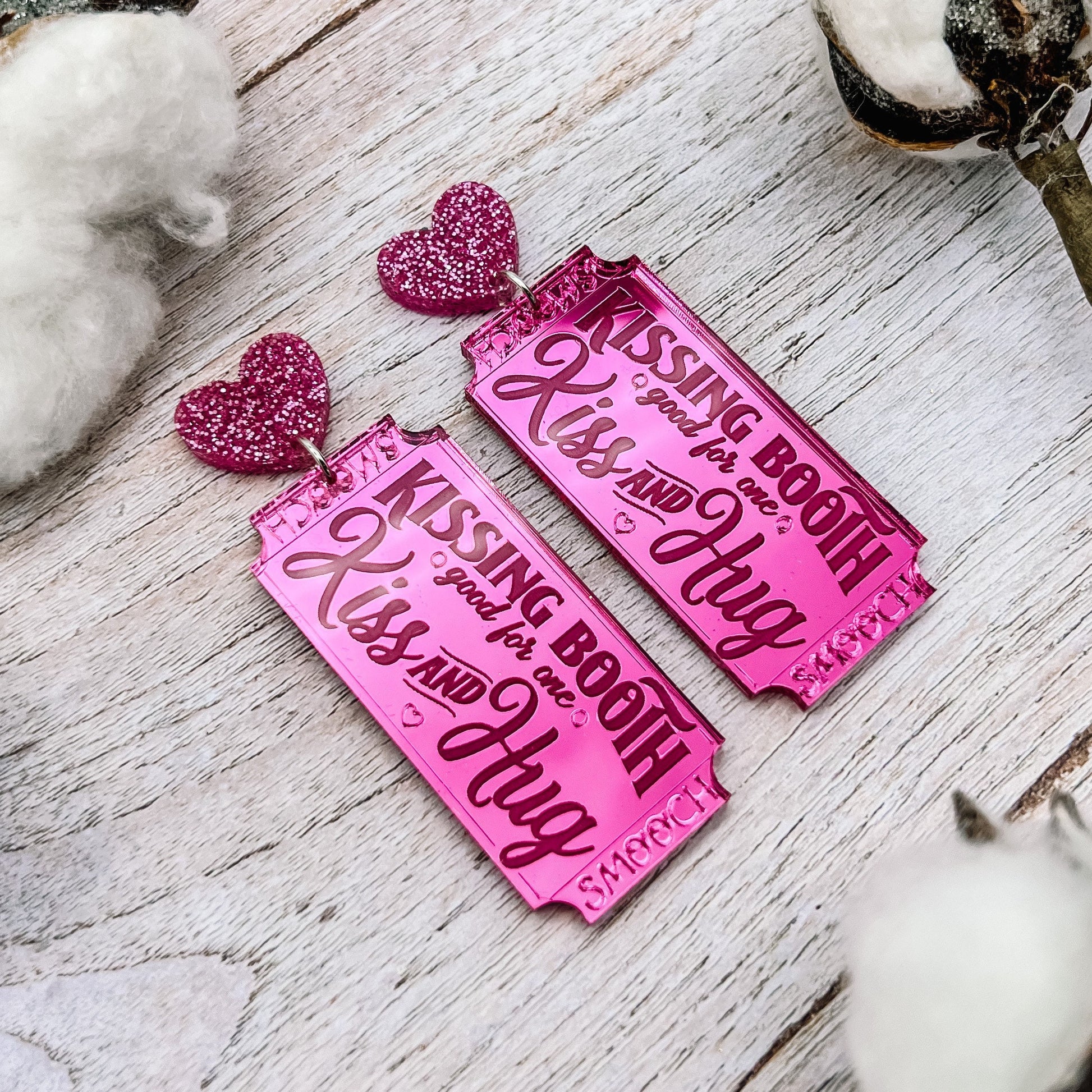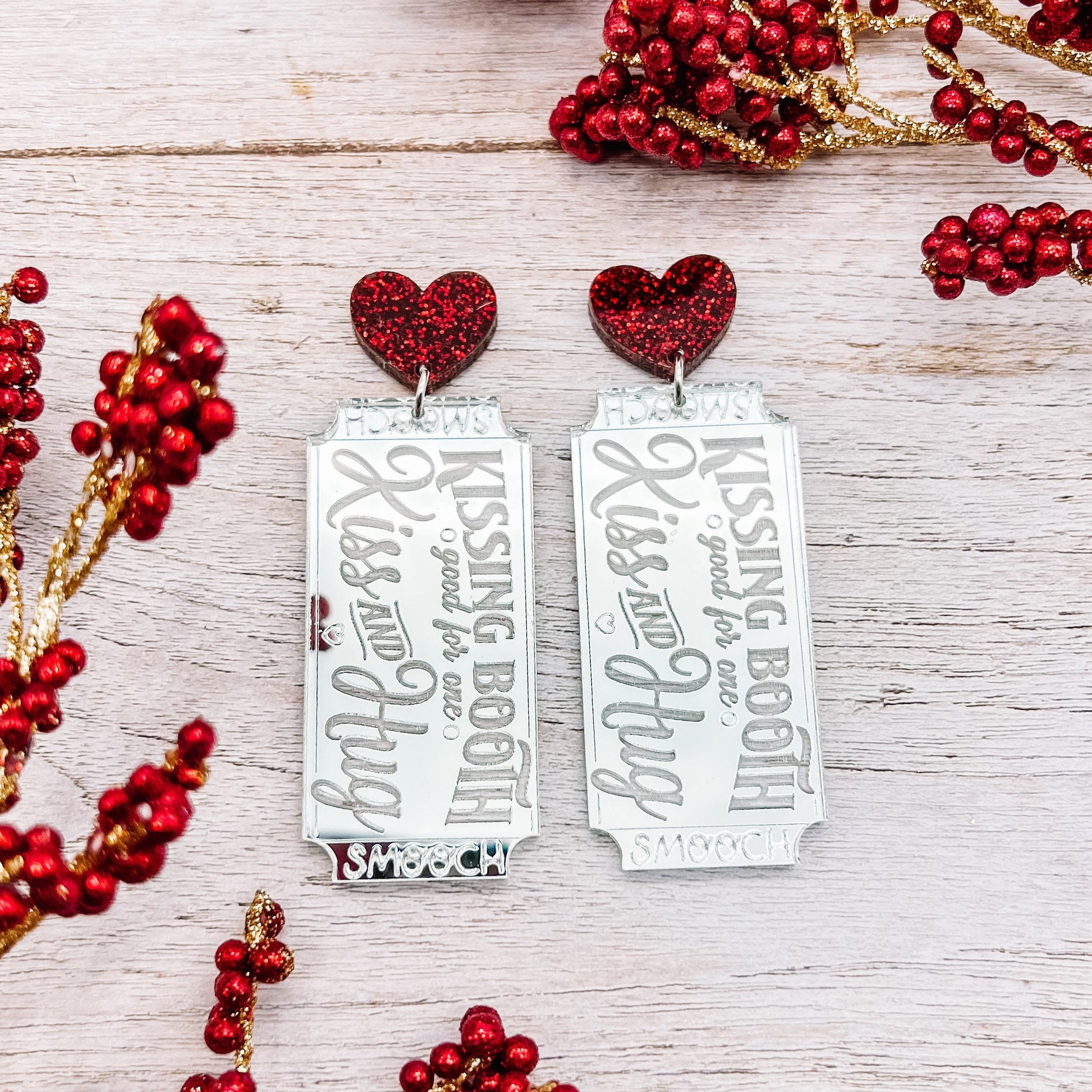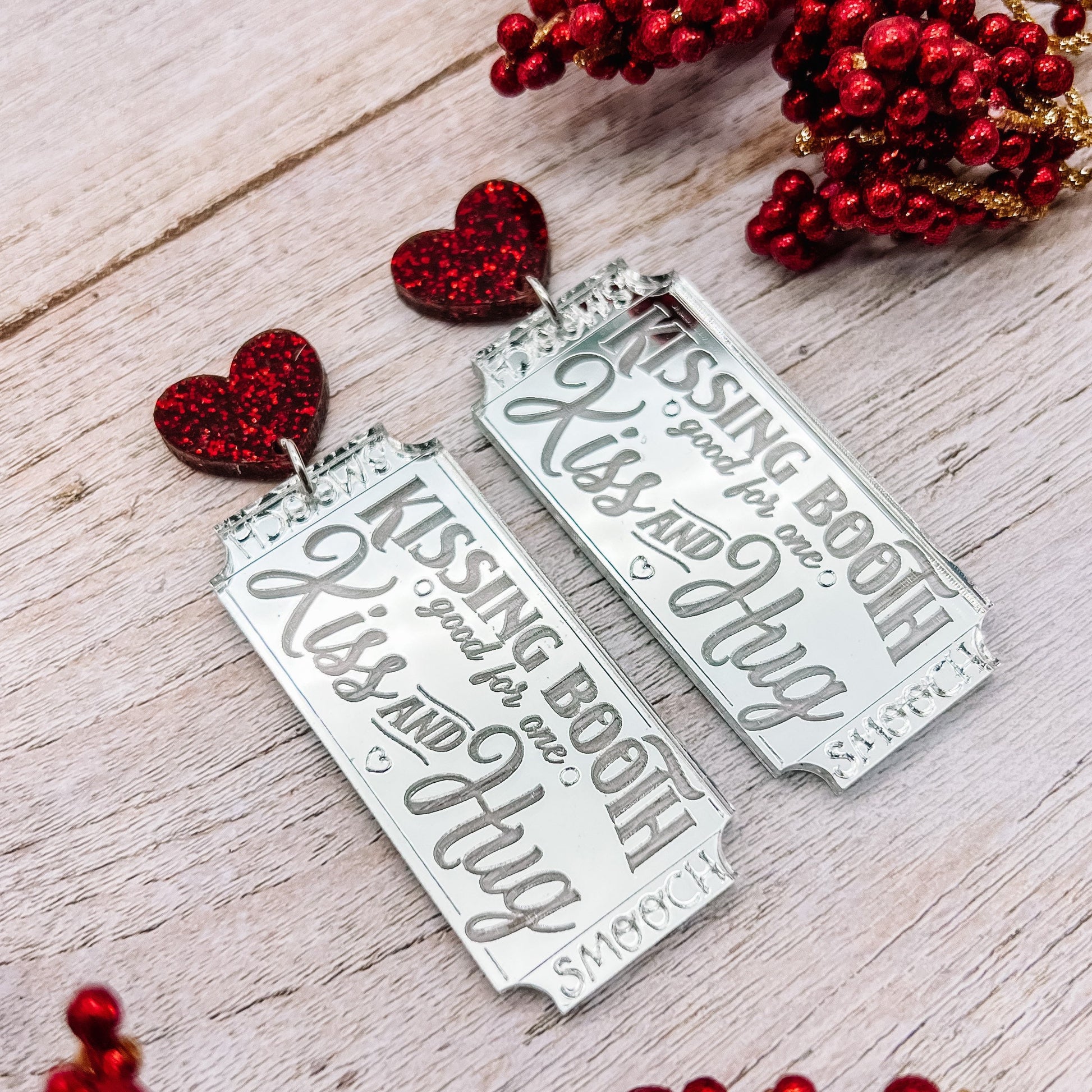How incredible are these showstoppers?! π€© Your choice of silver mirror kissing booth tickets with red glitter heart studs, or pink mirror kissing booth tickets with pink glitter heart studs! These beauties are super reflective and fun! Perfect for Valentineβs Day and all February long!