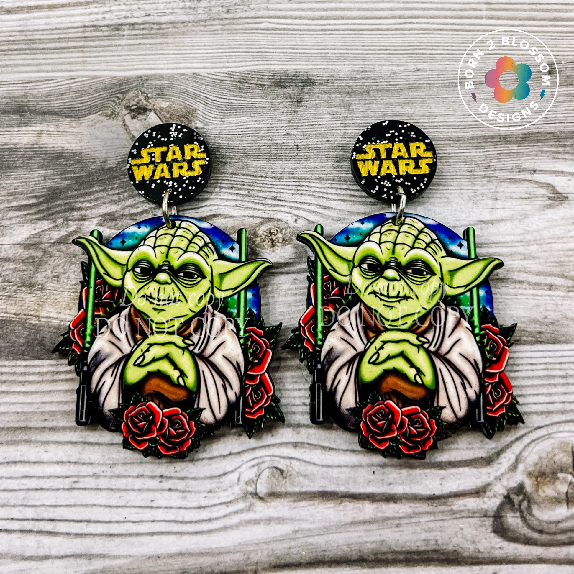 These lightweight Star Wars earrings measure 1.8 inches long, not including the circle posts.