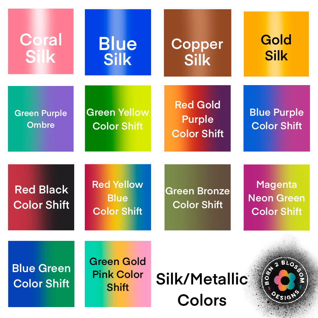 Pictured in the listing is 11” matte rainbow and Red/Gold/Purple Color Shift
