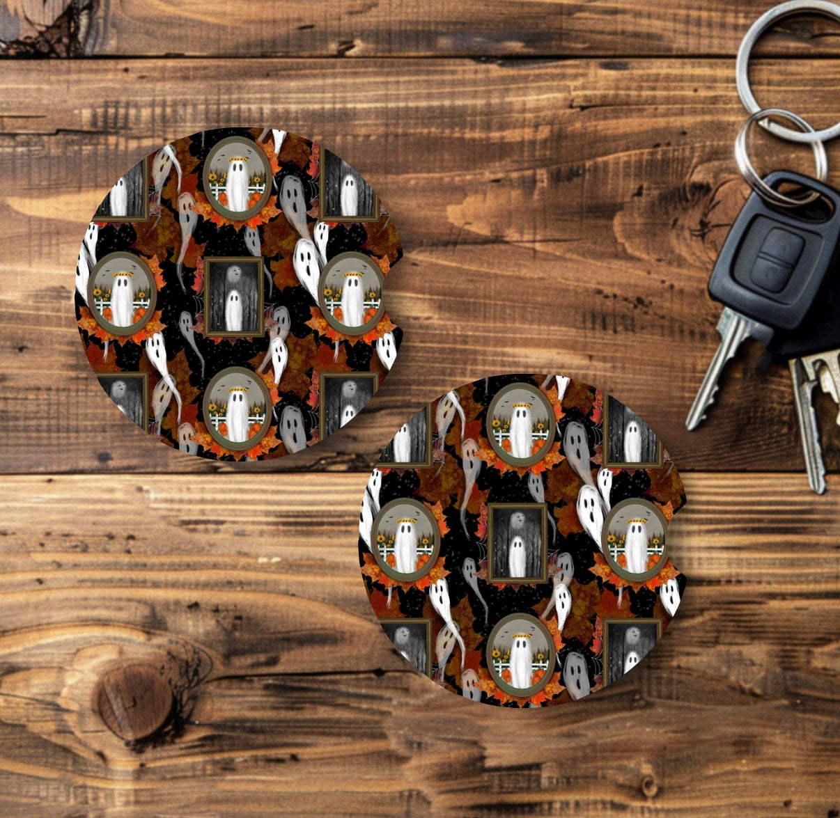 The ceramic coasters are made from a good absorbent ceramic stone that can easily absorb the water outside a cup, keeping your car cleaner! They will fit most cup holders, measuring 2.6” in diameter and .24” thick.