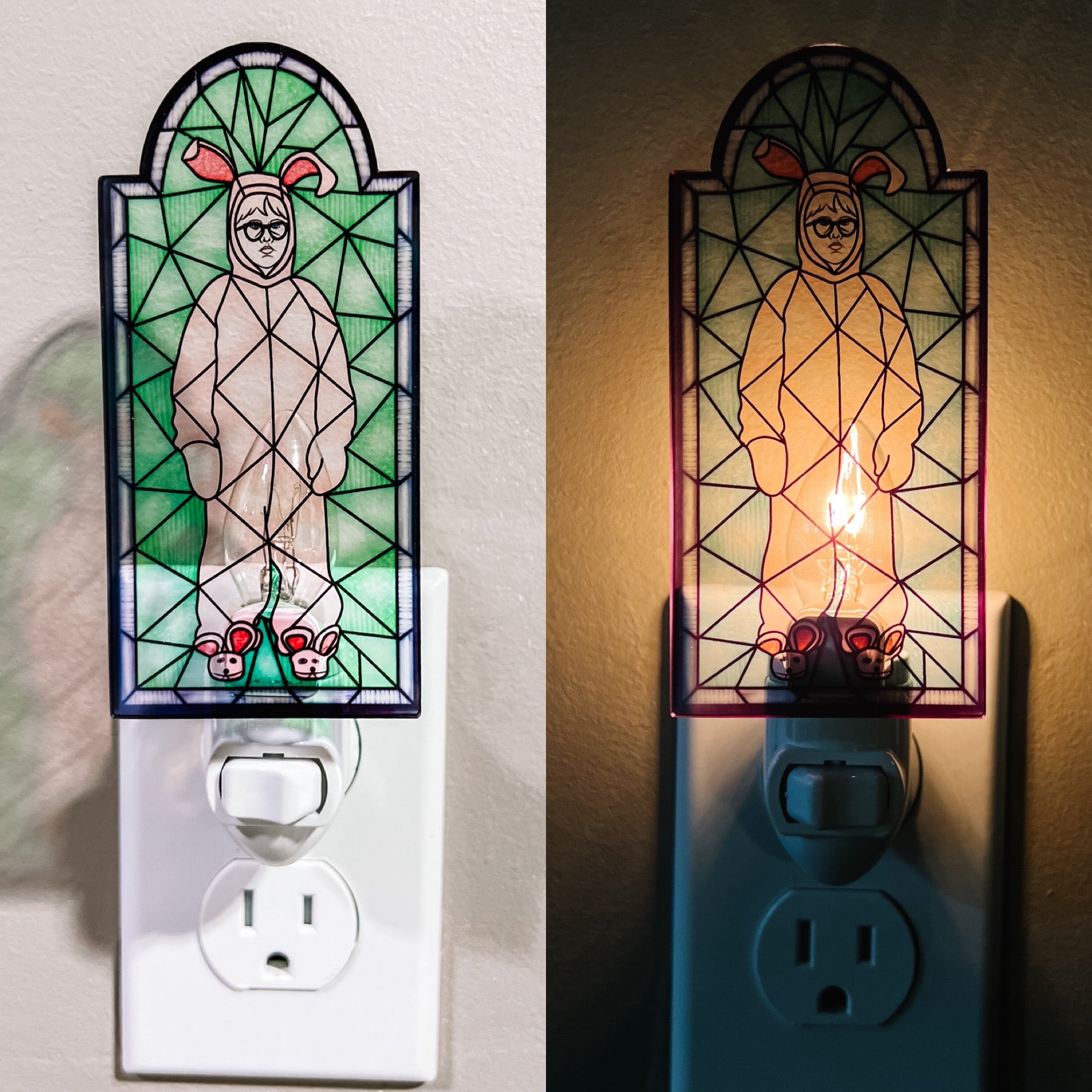 SEP CLEARANCE Holiday Movie Stained Glass Nightlight (RALPHIE Pink Bunny)