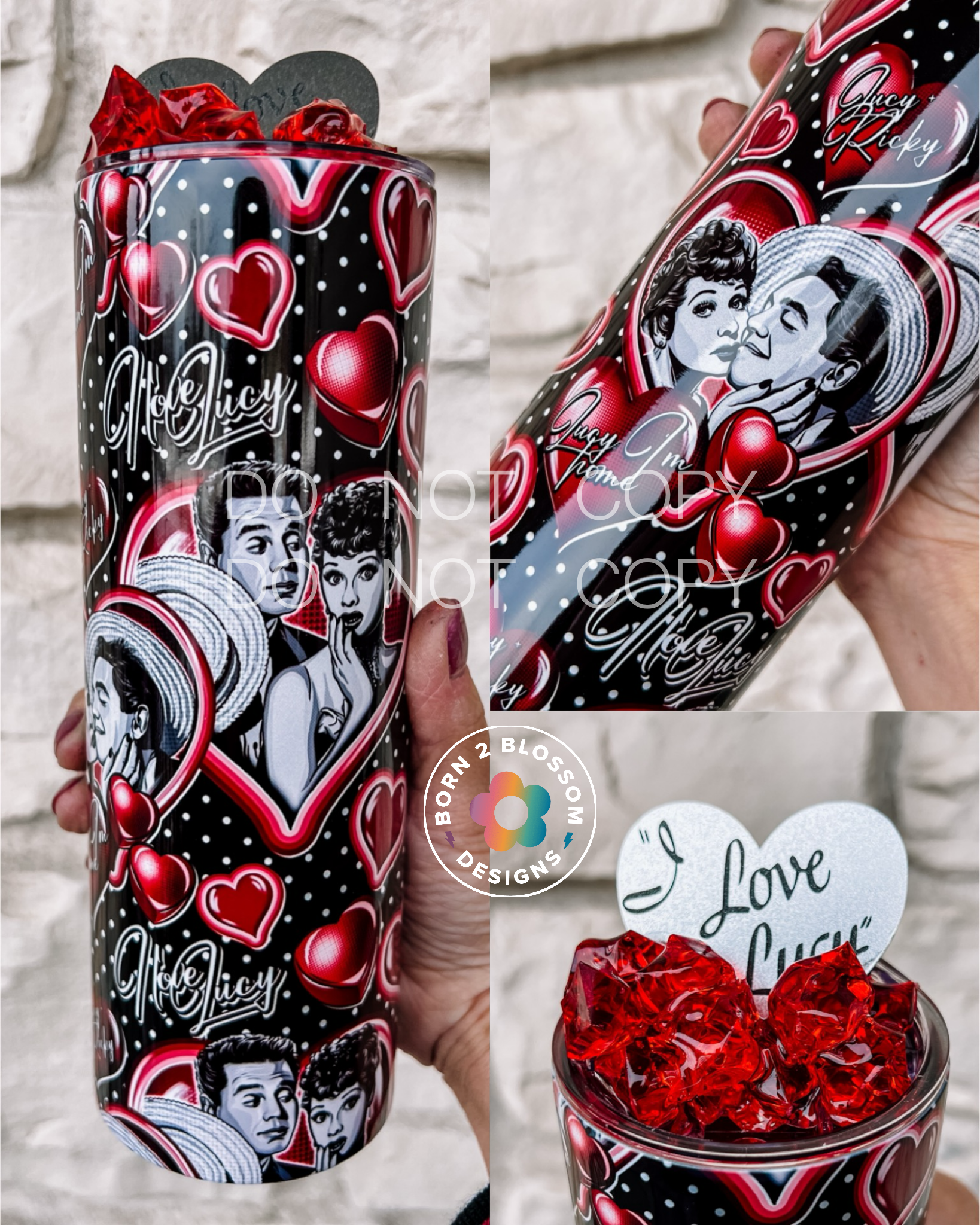 This is a sublimated tumbler featuring a montage of Lucy and Desi!