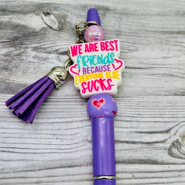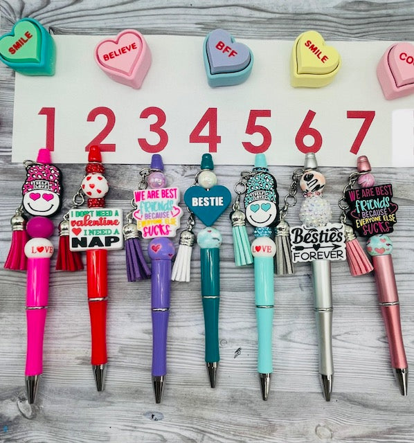 NOTE:  Actual version may differ versus photos shown in terms of pen colors and bead colors/types, as well as charms shown.