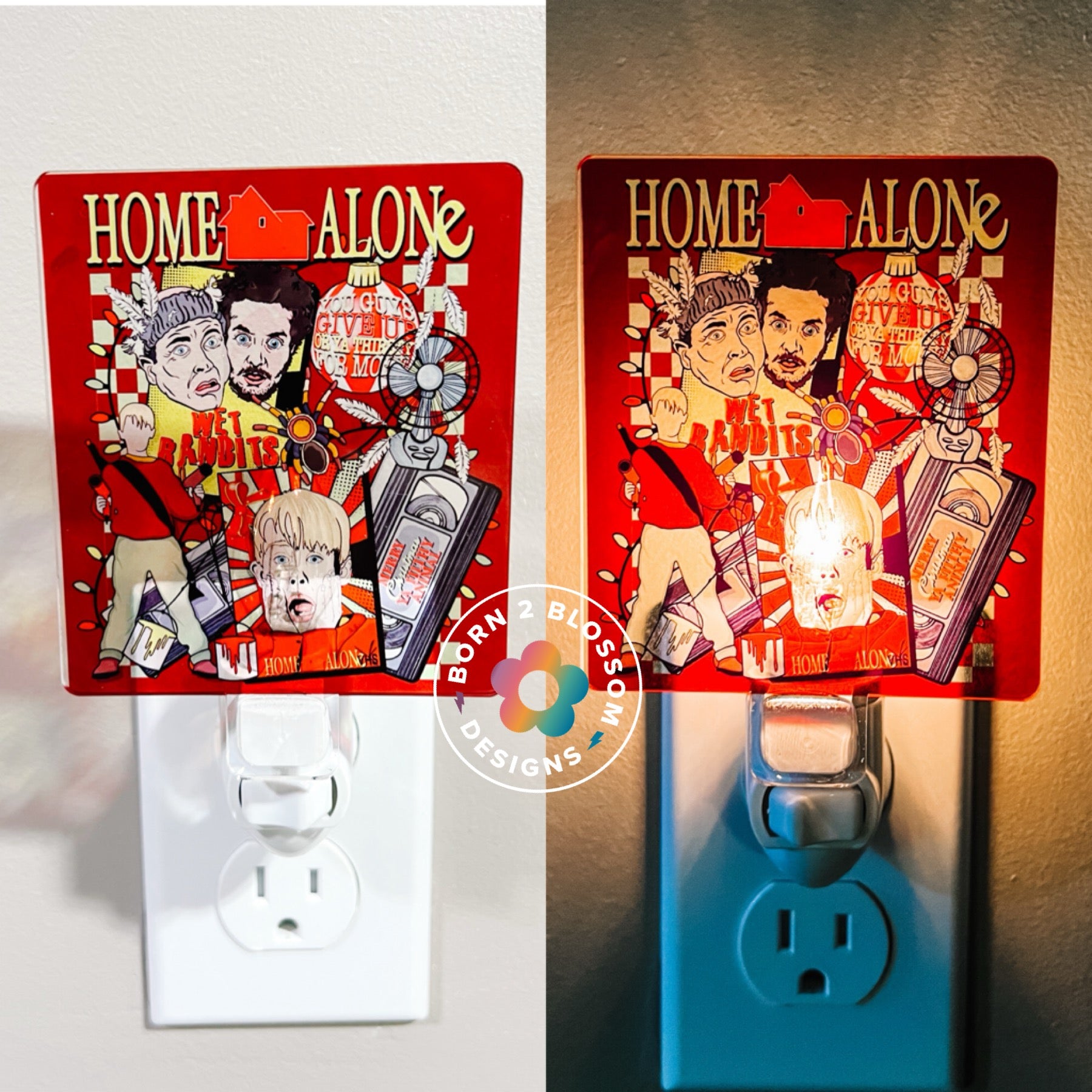This design is sublimated on a 4” tall piece of clear acrylic. It comes with a plug in nightlight and incandescent bulb.