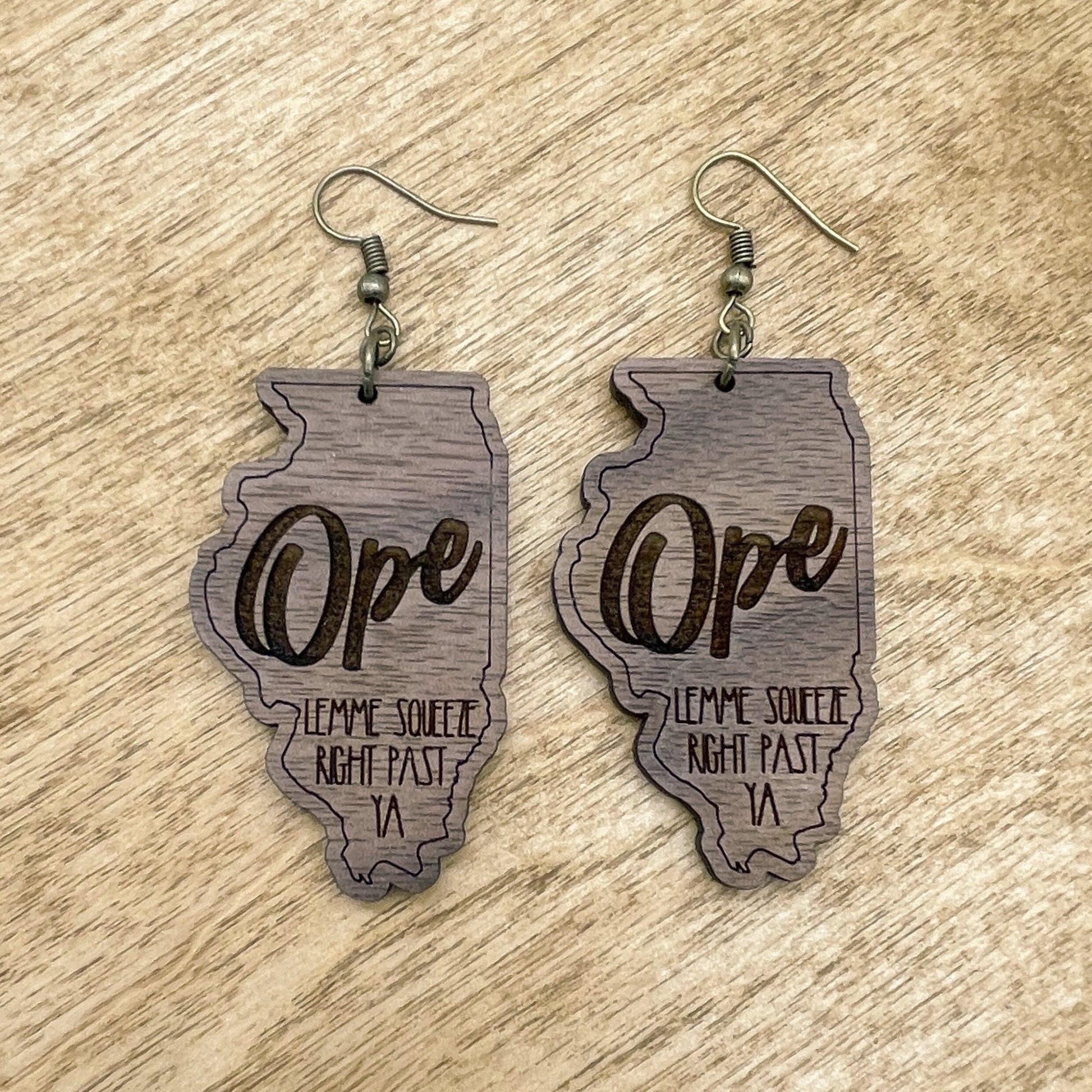 This listing is for 1 pair of Laser cut walnut wood earrings in the shape of Illinois with a phrase us midwesterners say way too often! 😂. Perfect for Illinois residents or anyone moving to or visiting Illinois!