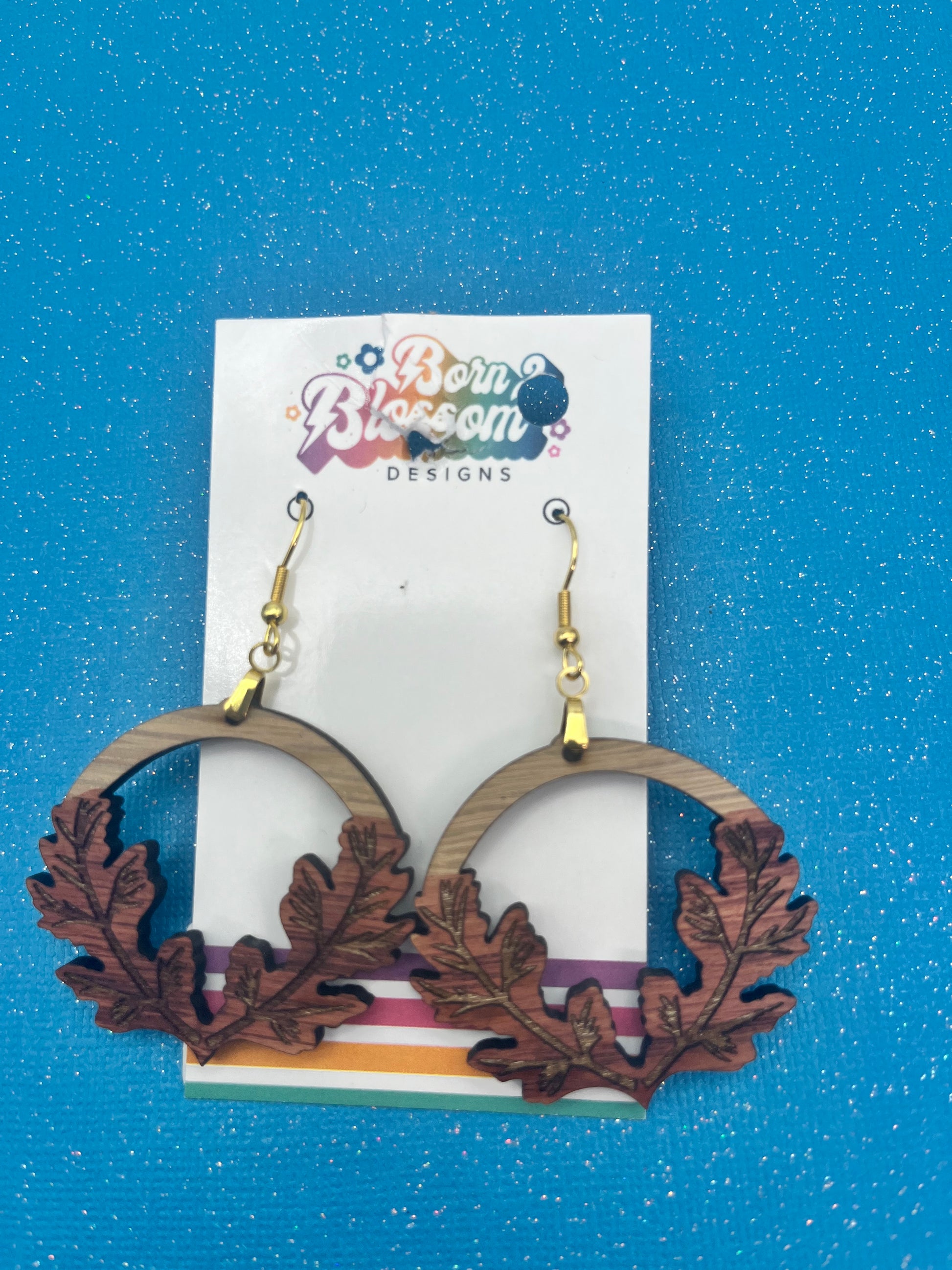 MAY CLEARANCE Wood leaf circle Dangles