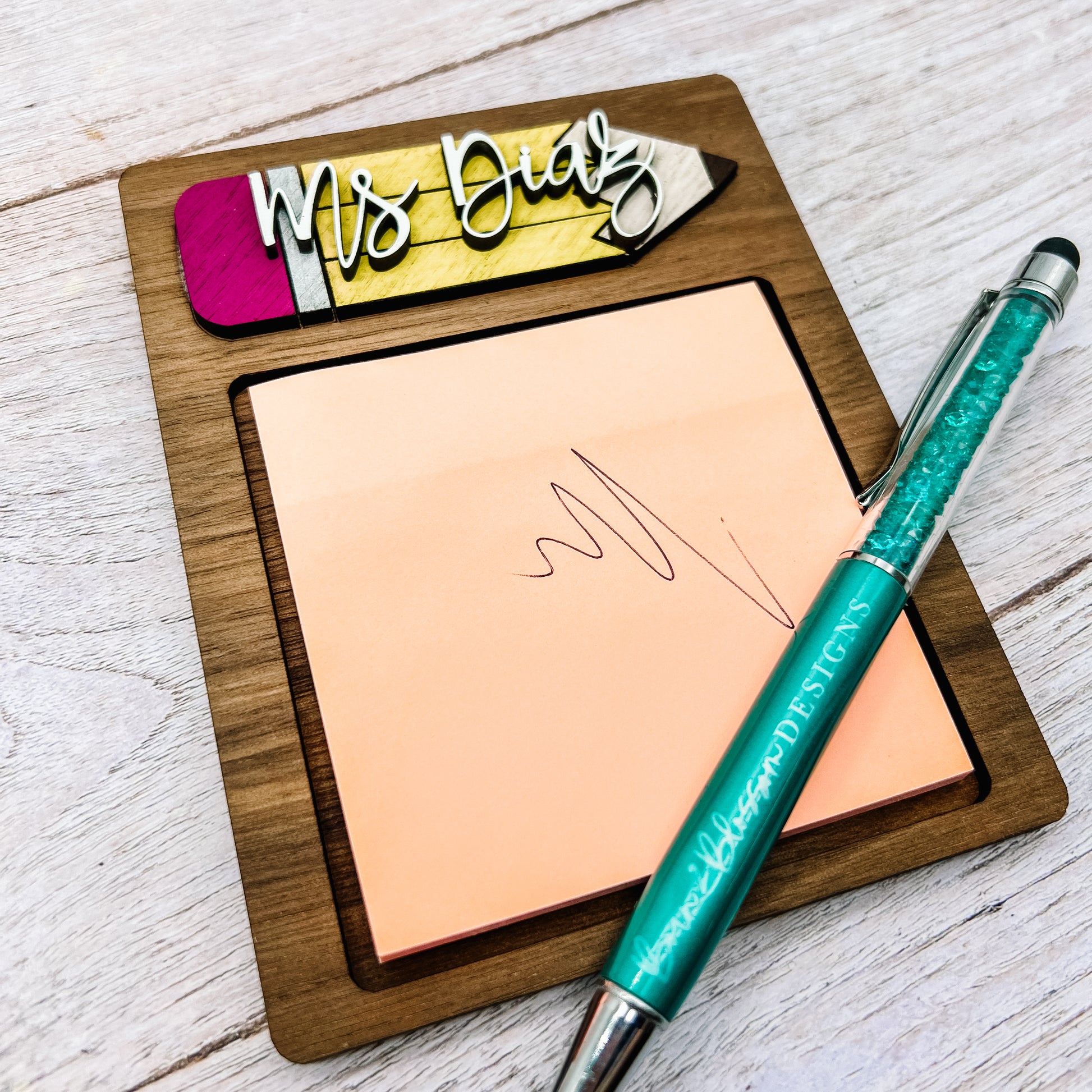 Show your appreciation for all the hard work your child’s teacher does with this personalized sticky note holder.