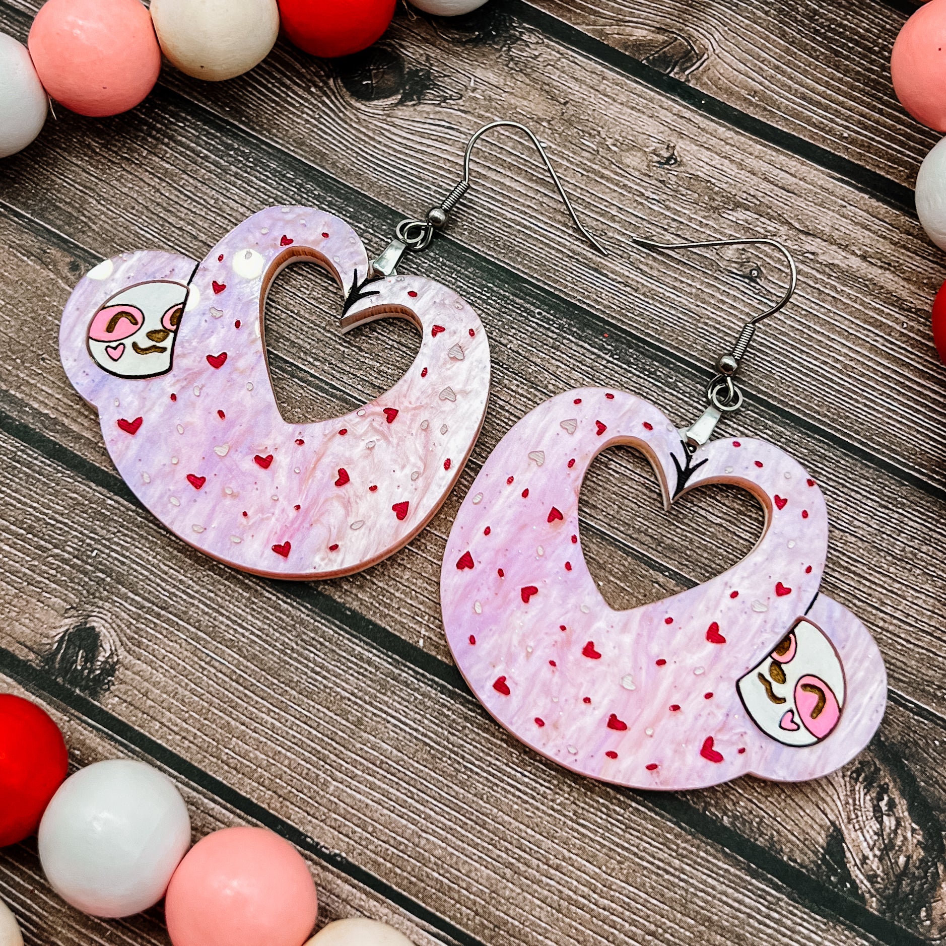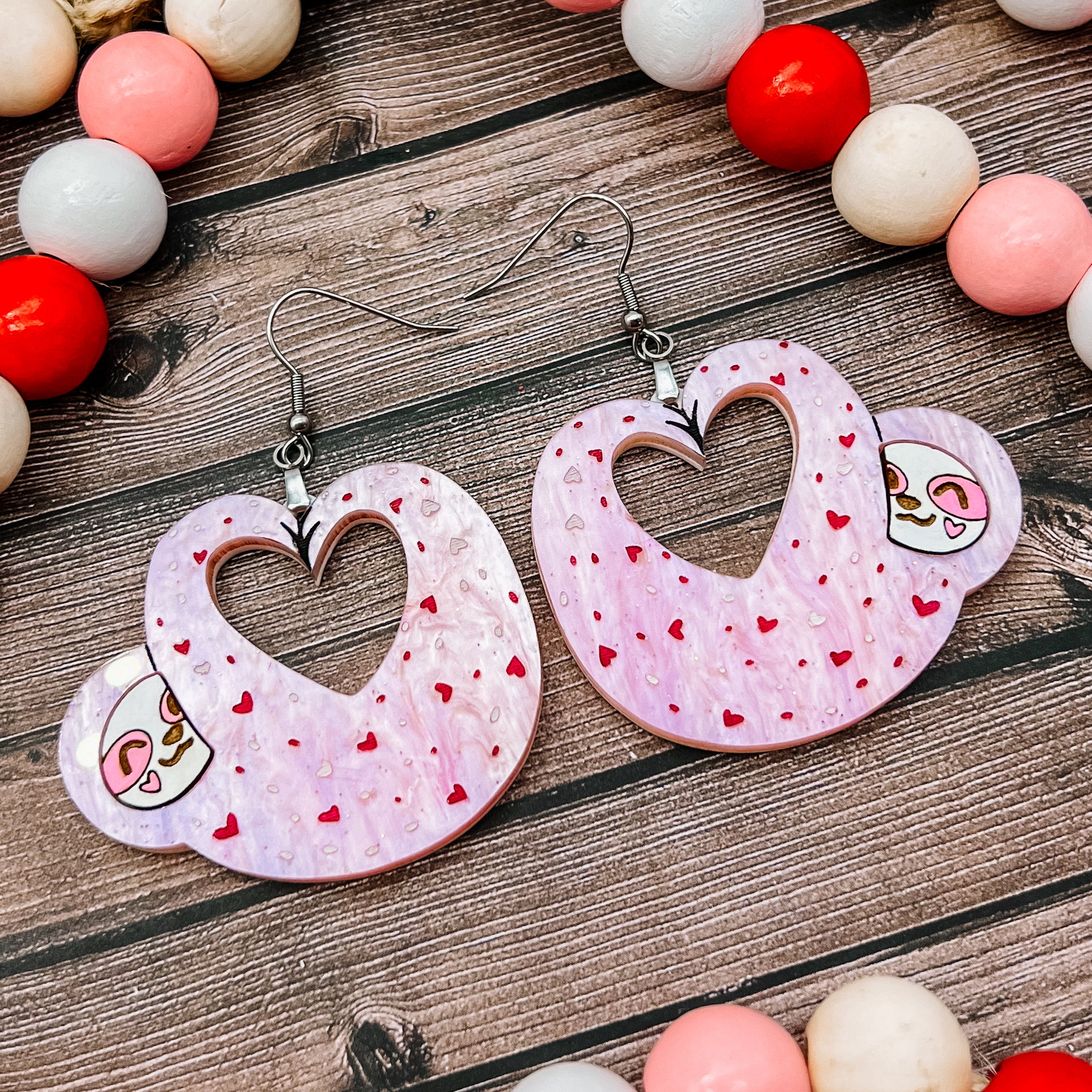 How incredible are these showstoppers?! 🤩 Sloths cut from a light pink marble acrylic. They measure 1.6” long. Great for Valentine’s Day but perfect year round for all you statement earring lovers!