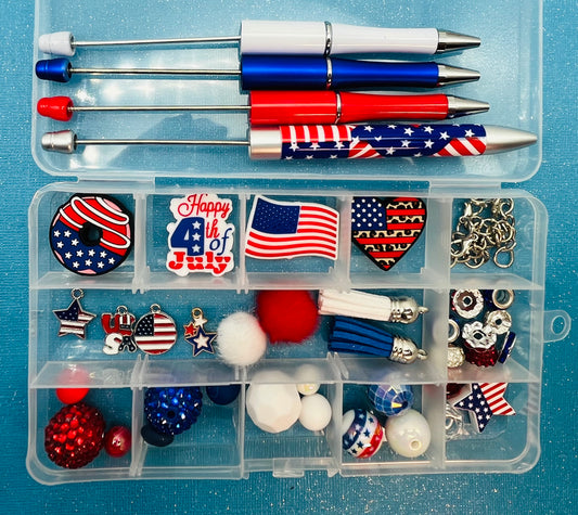 4th of July Keychain Wristlet with Wallet and Beaded Bracelet