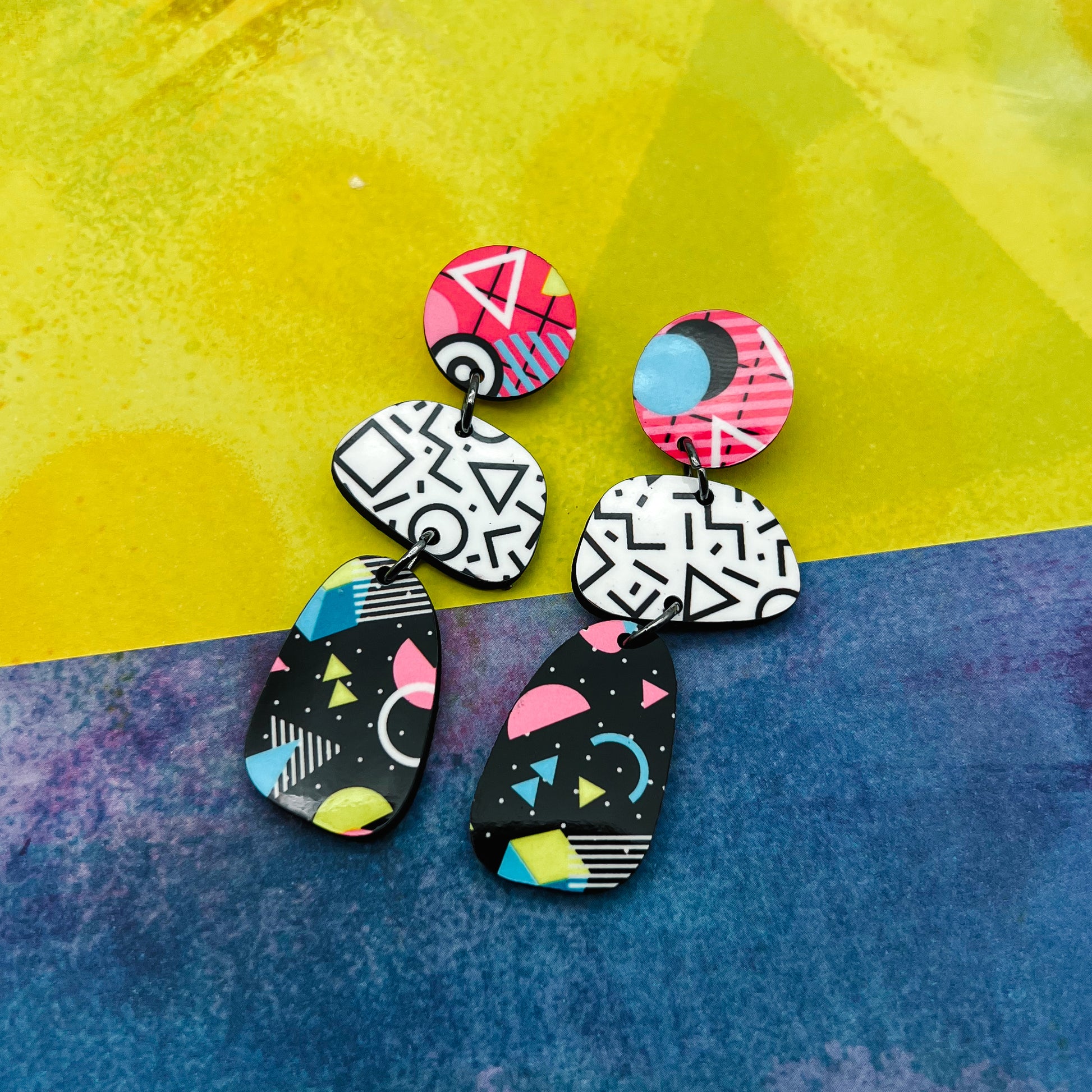 This listing is for 1 pair 90s pattern mixed earrings cut and sublimated on unisub, front and back. 90s fashion is coming back in style and these would make the perfect accessory!