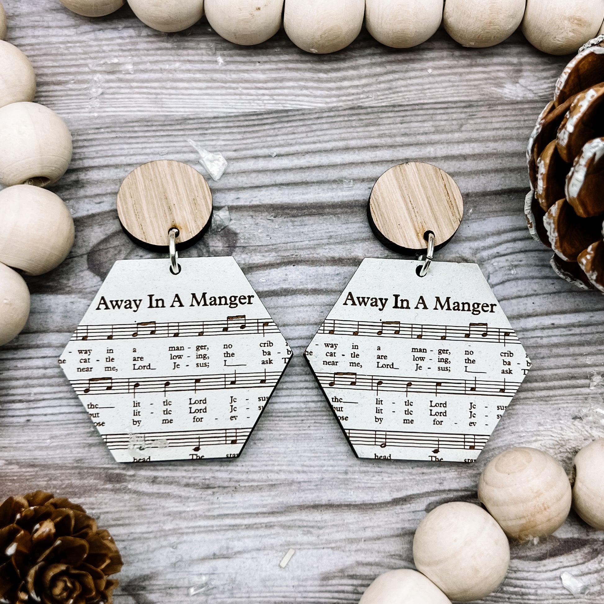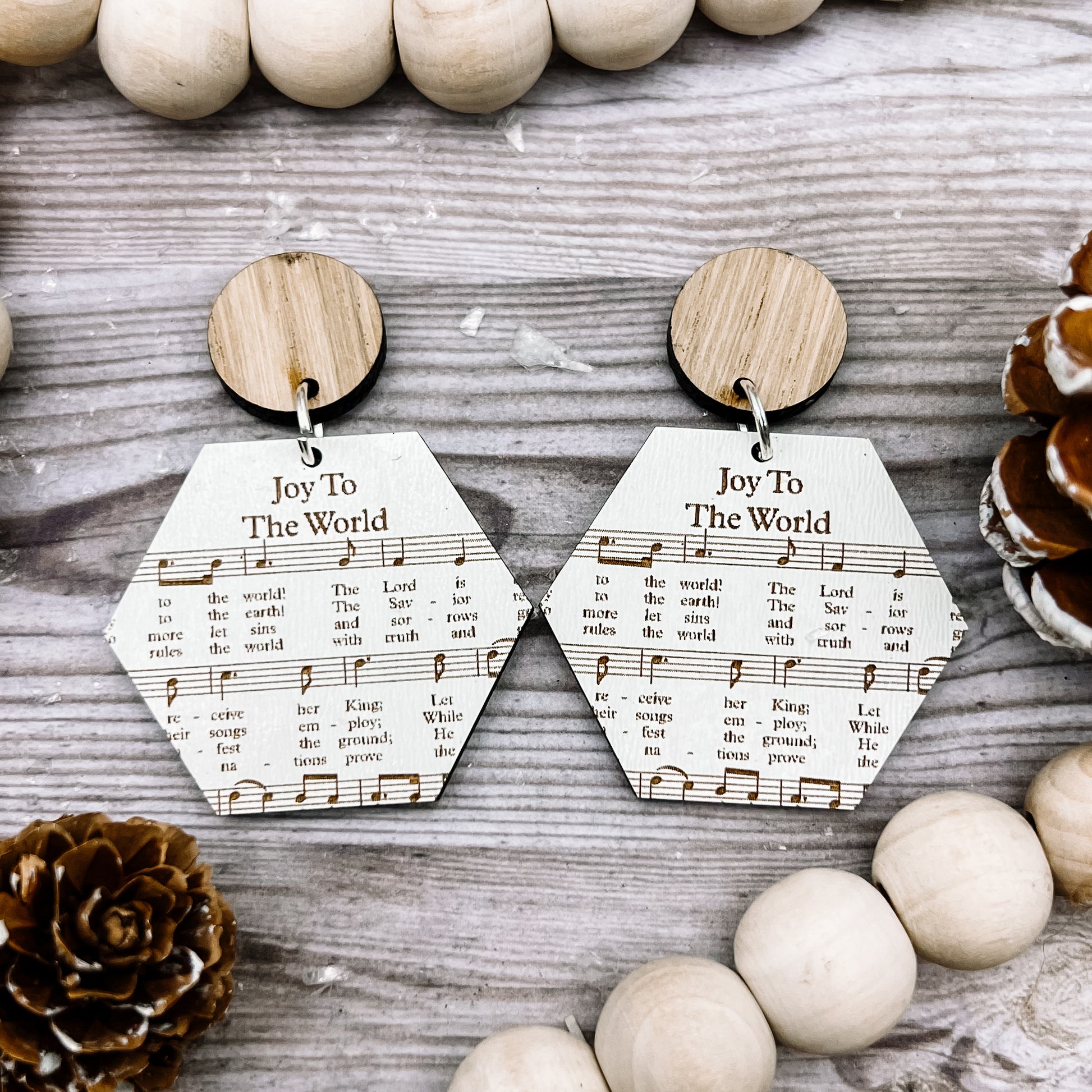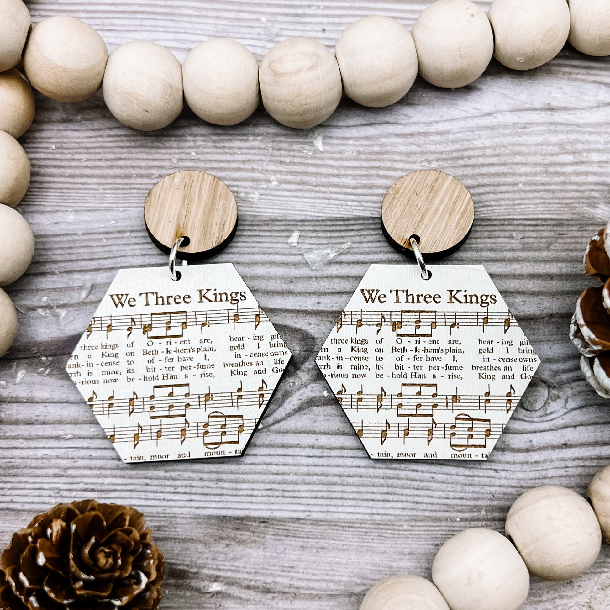 These ultra lightweight earrings measures 1.6” long not including the circle posts. It is made from 1/8” white board and 1/8” oak wood.