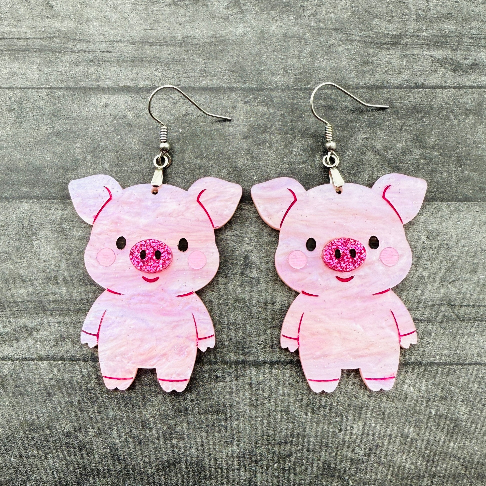 Adorable pig earrings cut from a pastel pink pearlescent acrylic!  Perfect for any country gal all spring and summer long!