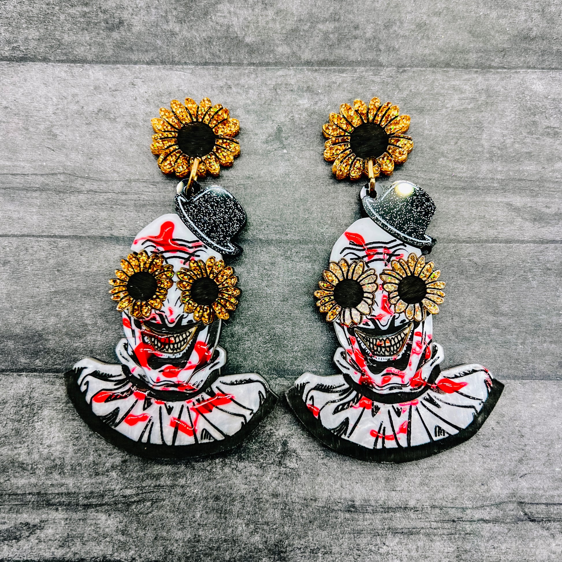 Art the Clown cut from various acrylics! The blood splatter is done by hand so no 2 pieces will look identical.