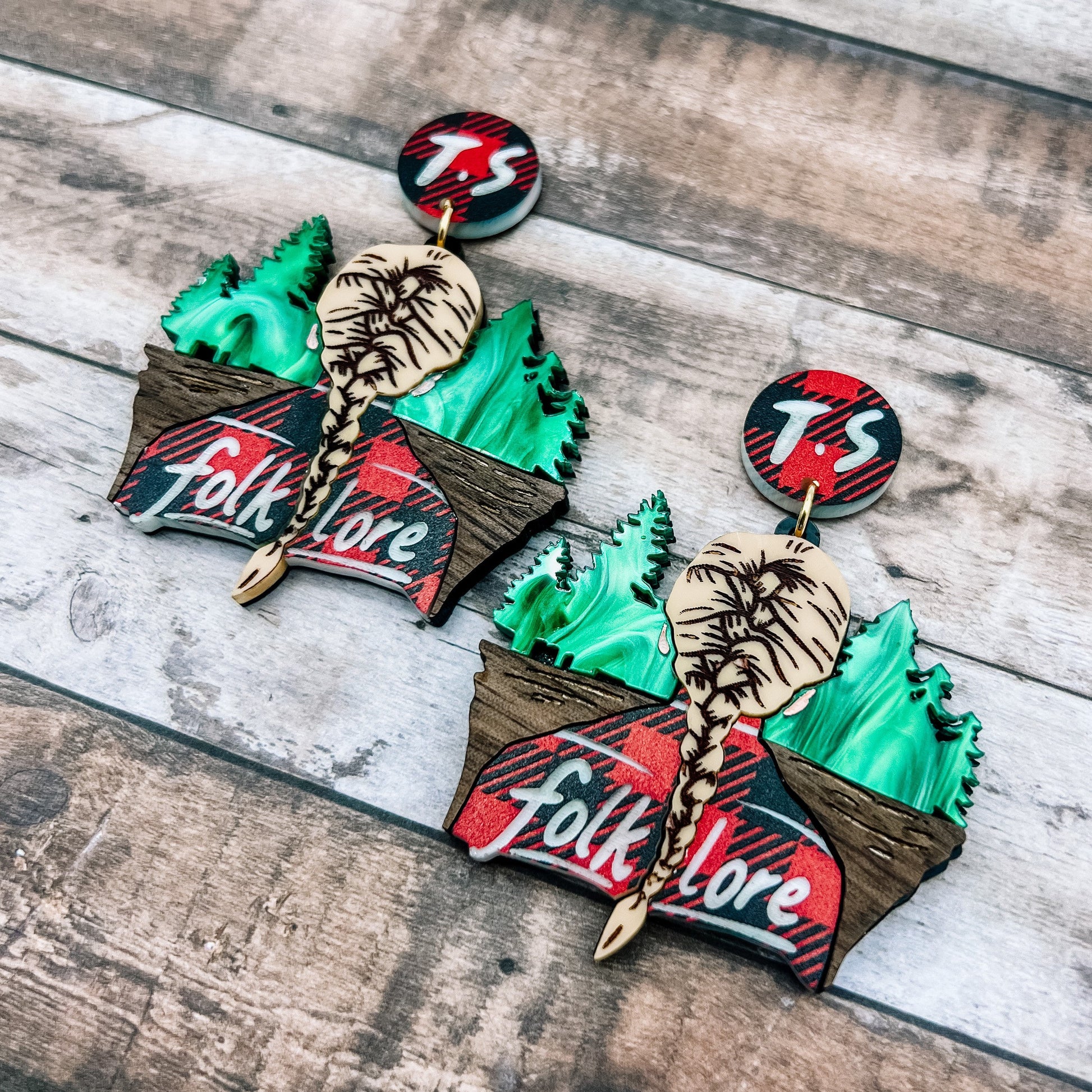 How incredible are these showstoppers?! Inspired by Taylor Swift’s Folklore album! Cut from walnut wood and various acrylics! Perfect for any Swifty!