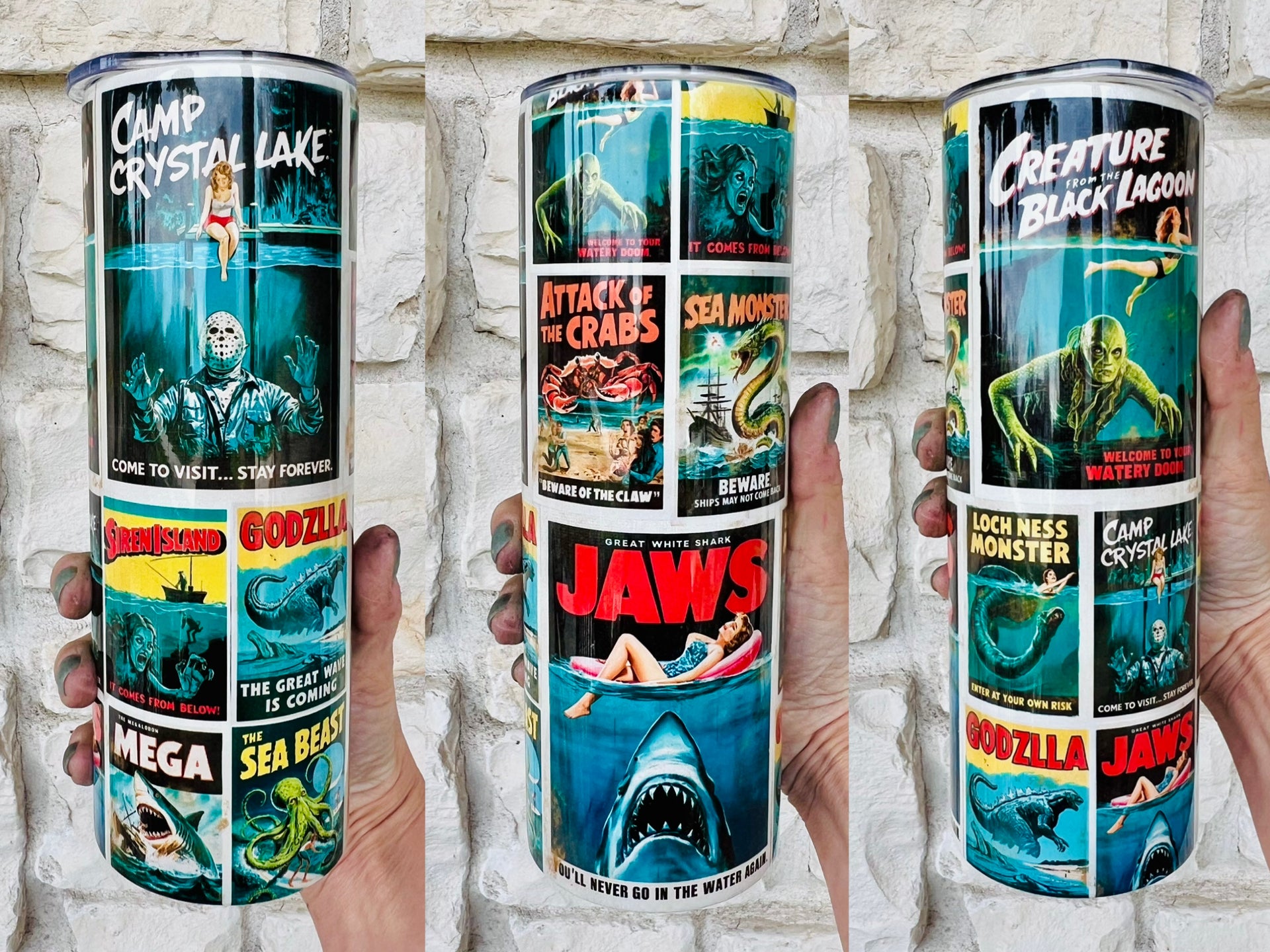 20oz Sublimated Tumbler featuring 10 different vintage style monster movie posters!!