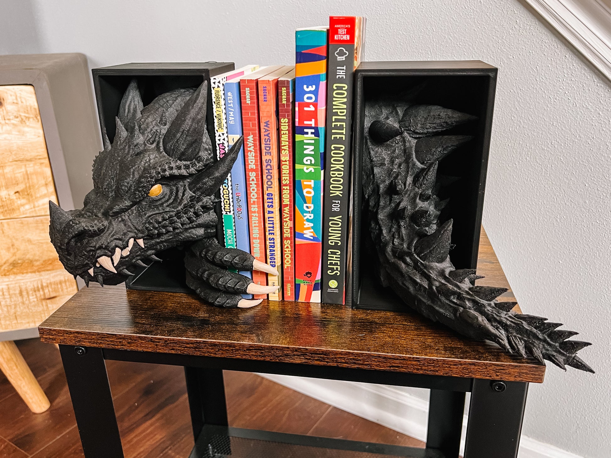 This is a 3d printed dragon book-nook it includes 2 book nooks; the head and the tail.