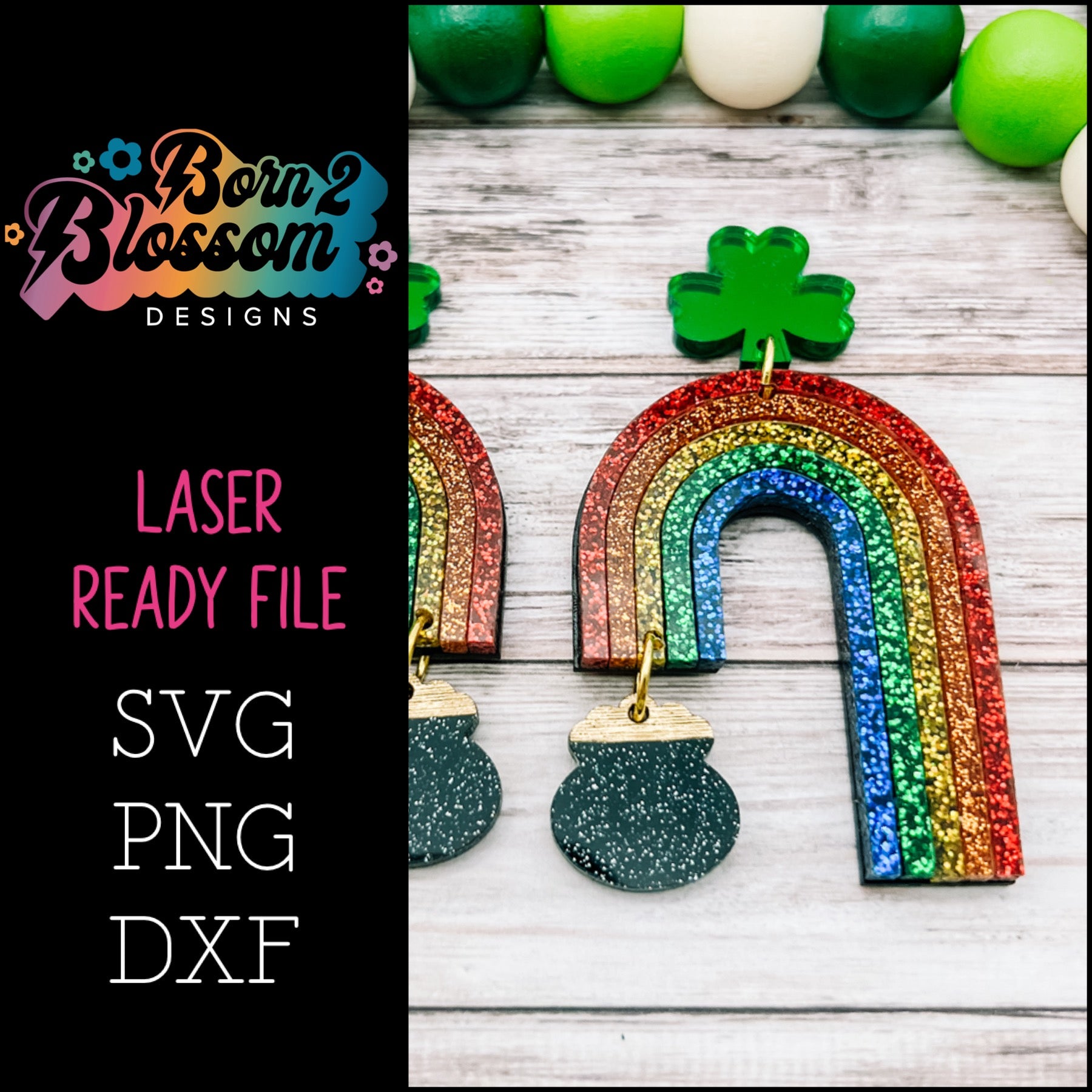 Pot of Gold Rainbow Earrings SVG Digital Download