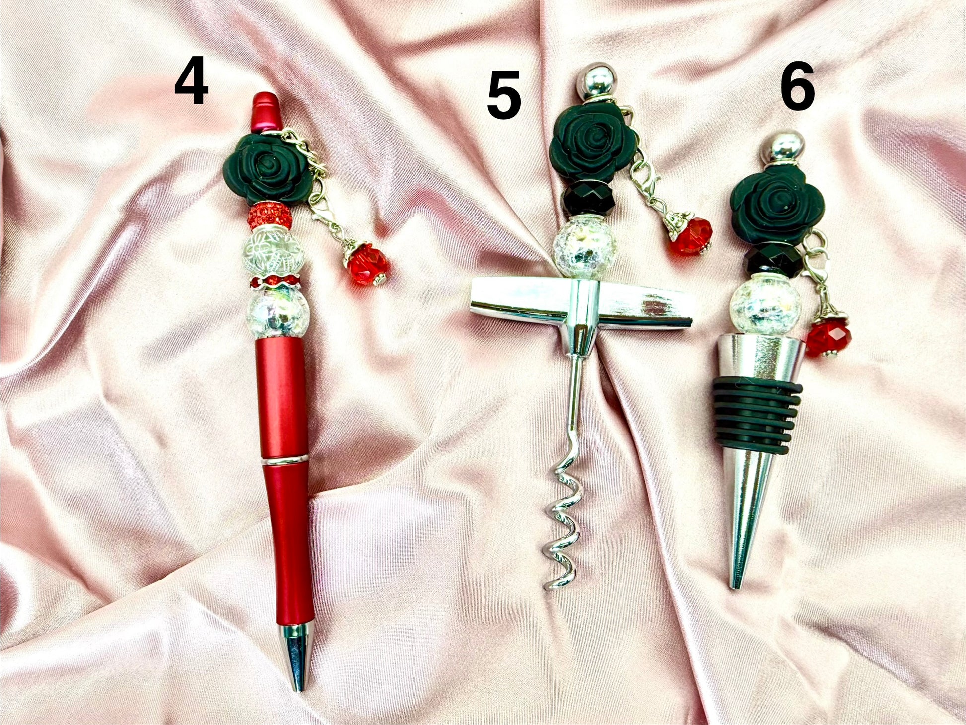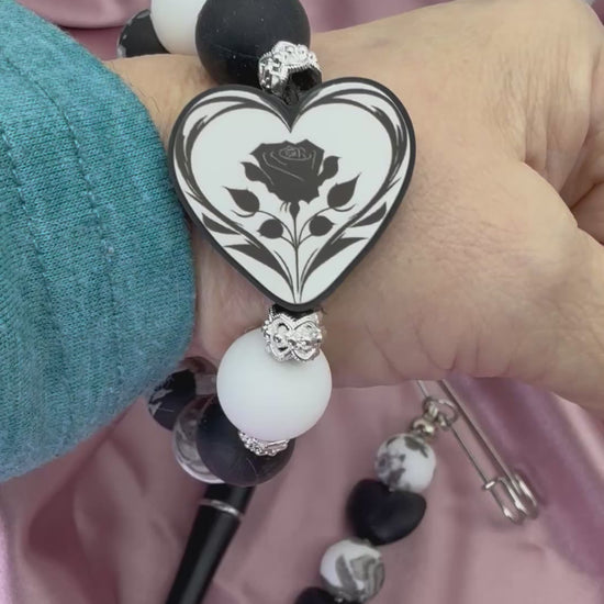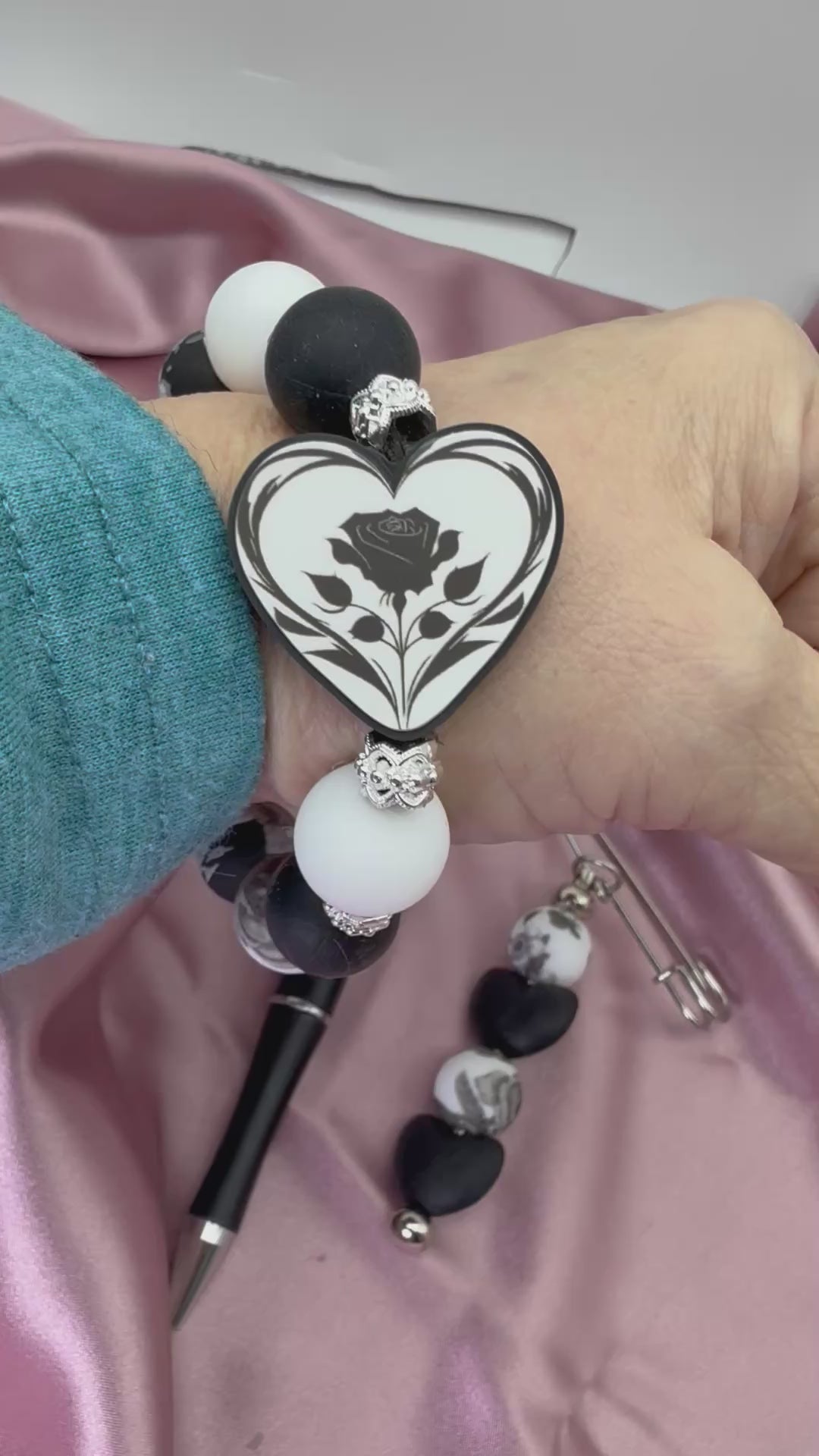This listing included pens, keychain bracelet, beaded brooch, wine bottle opener and wine bottle stopper. Only 1 of each black heart item in stock.