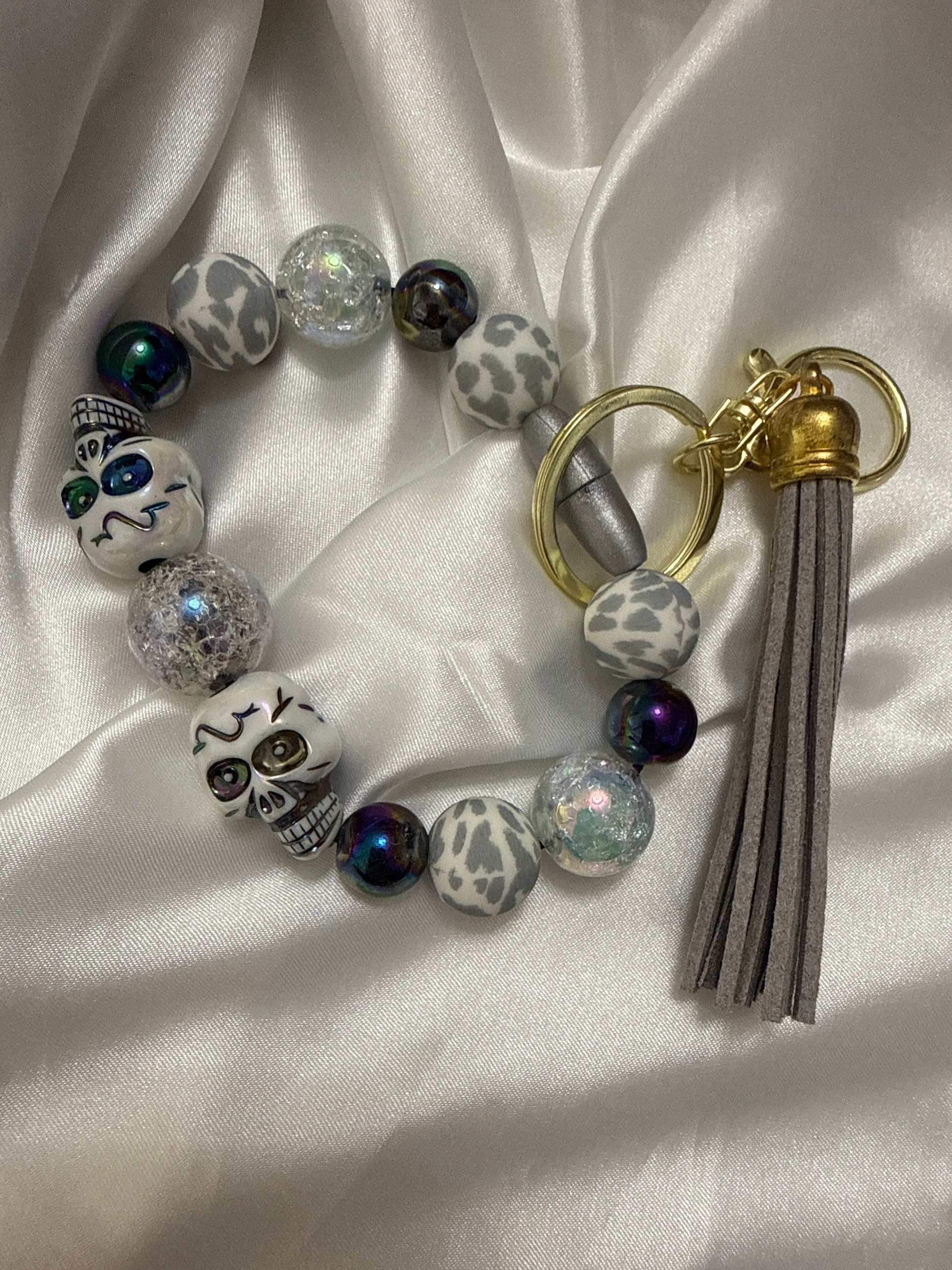 Handmade beadable bracelet featuring keychain.