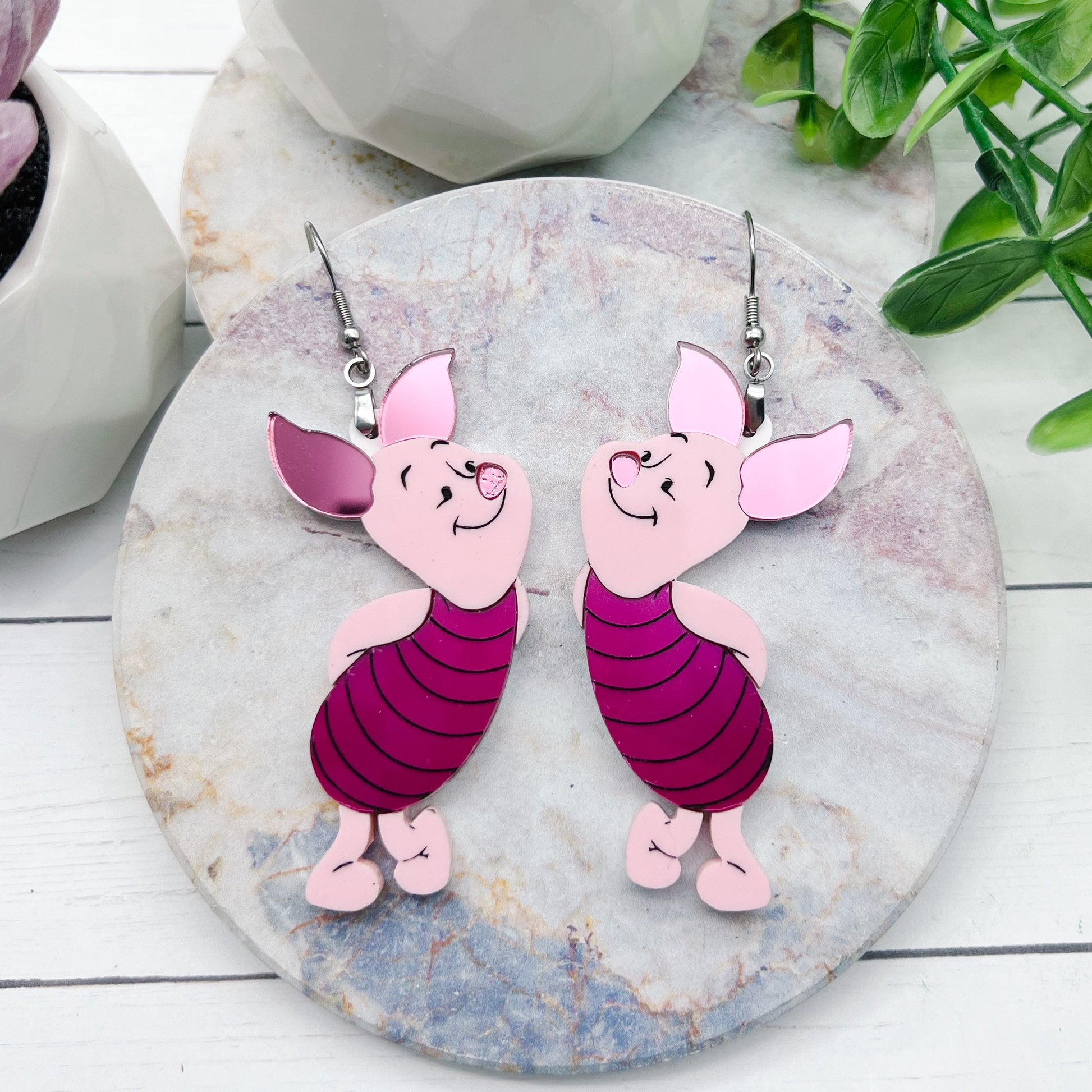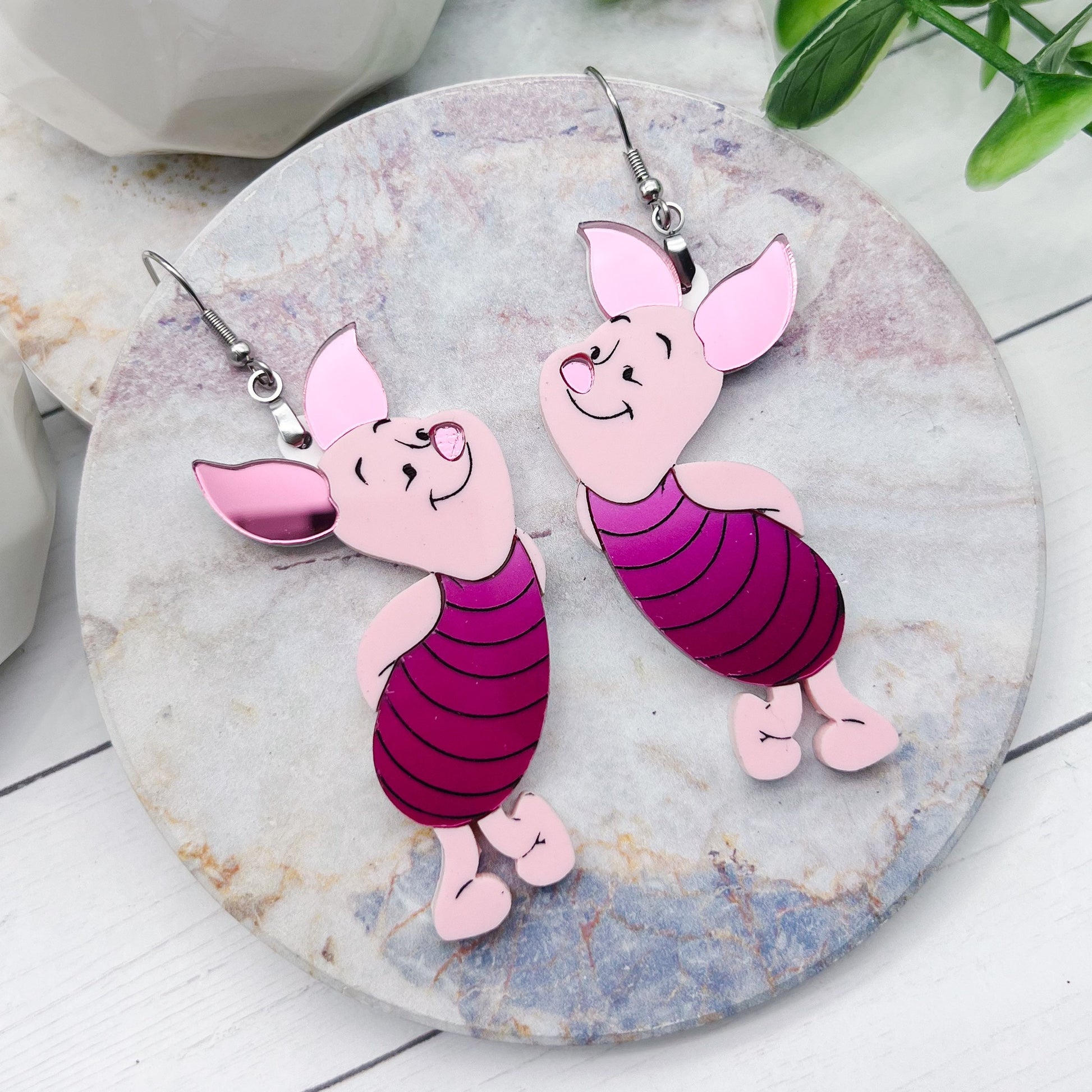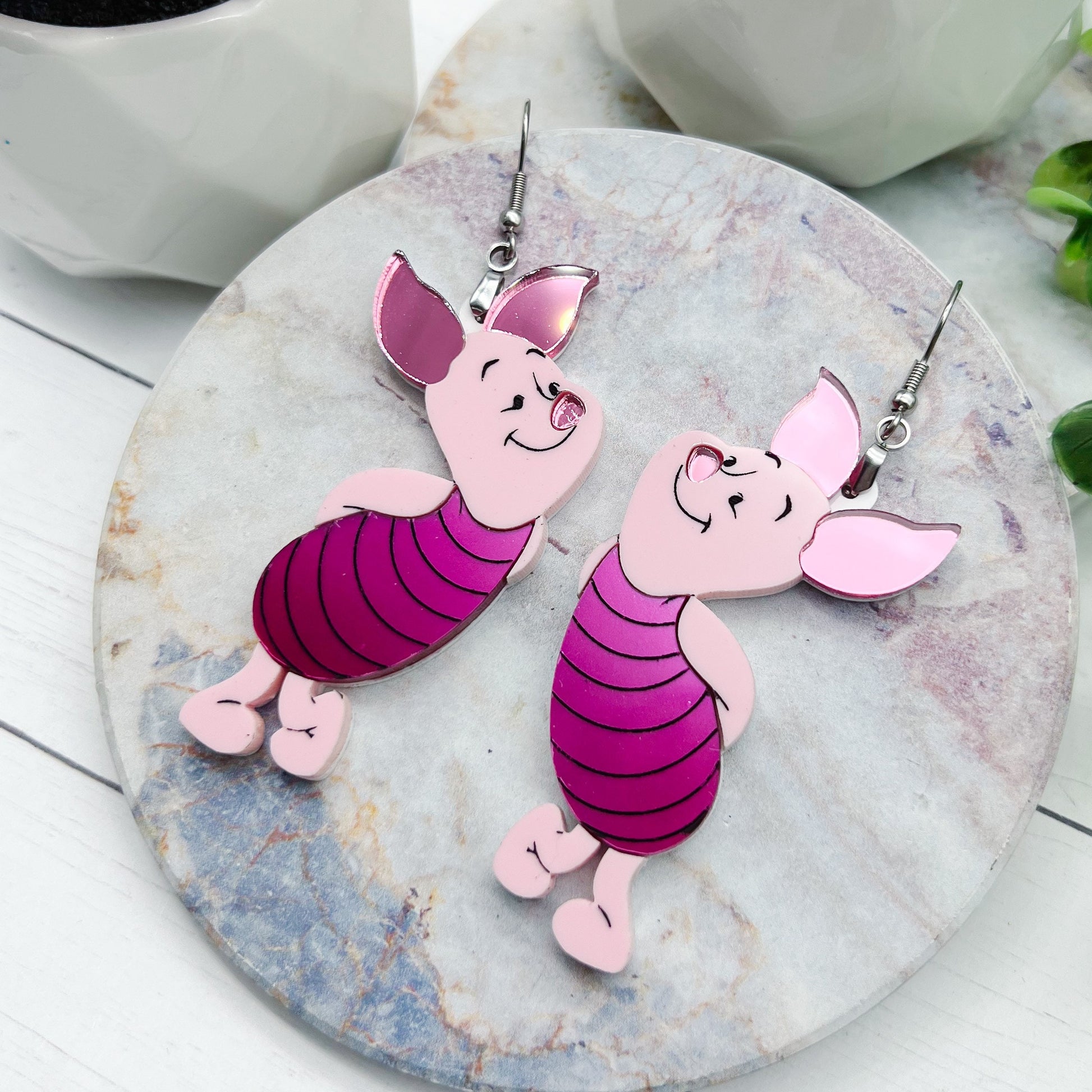 Adorable Piglet earrings cut from various pink acrylics! Perfect for any Winnie the Pooh fan!
