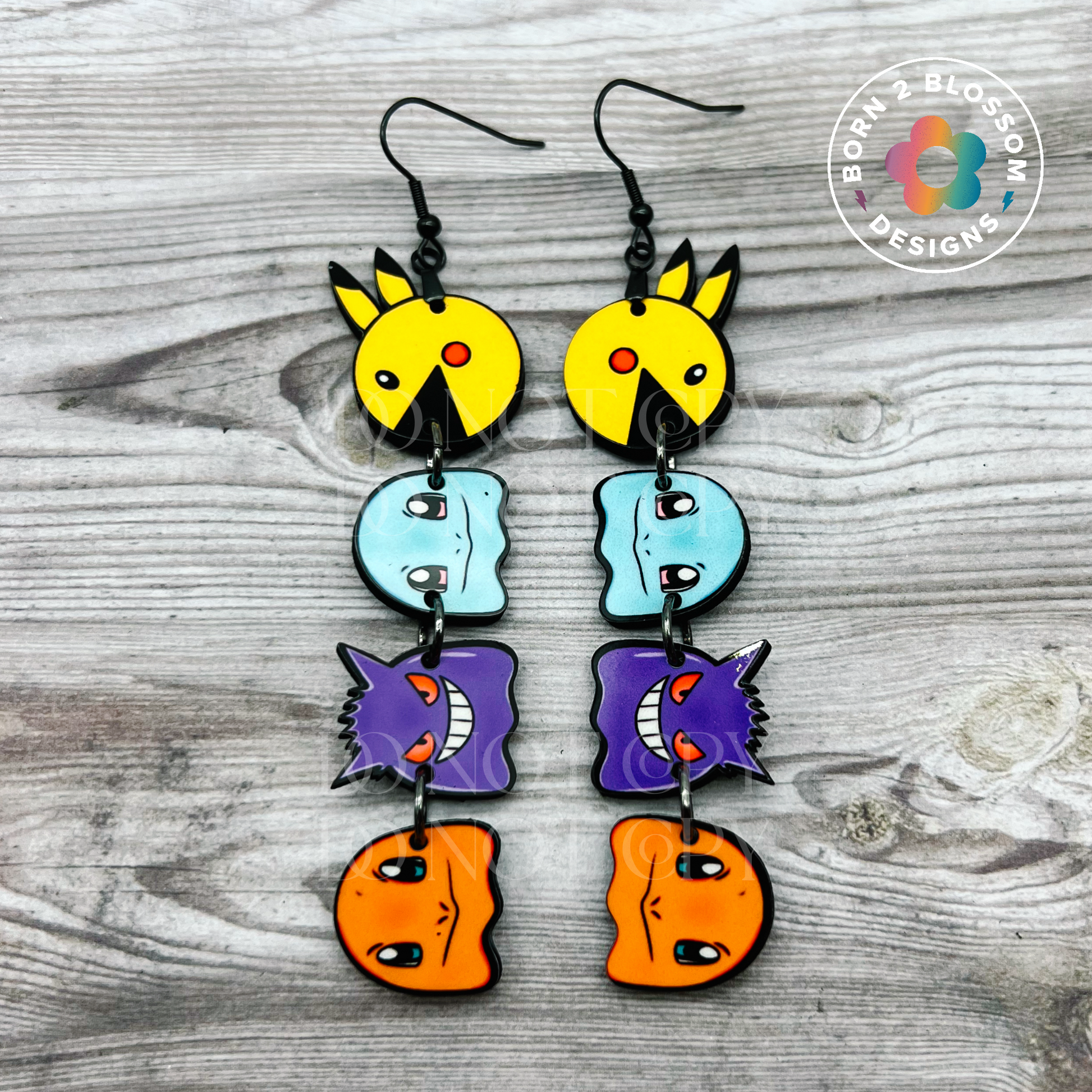 These lightweight Pokemon earrings measure 3.5” long, not including the hooks.