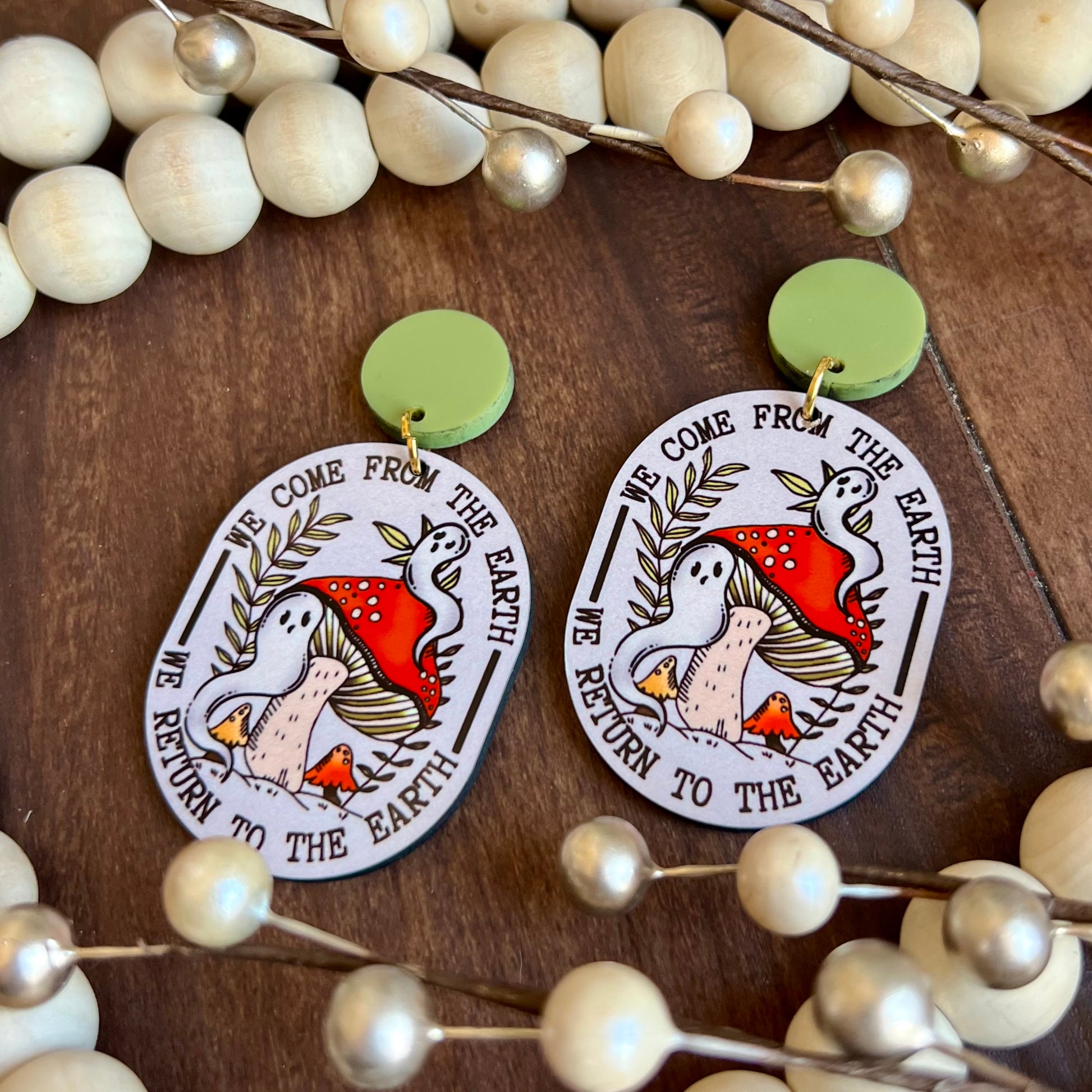 These lightweight sublimated Cottagecore  earrings measure 2” long, not including the circle posts.