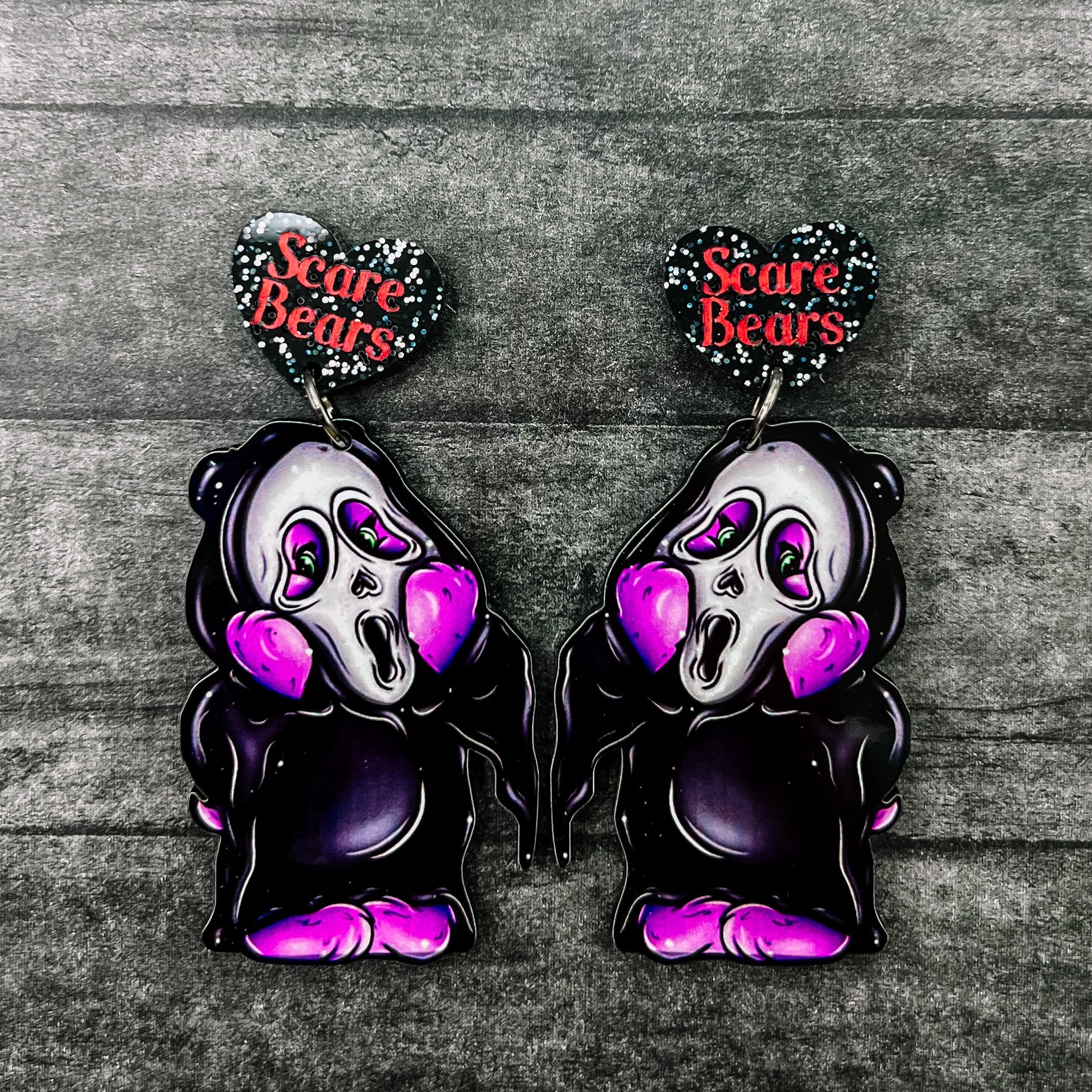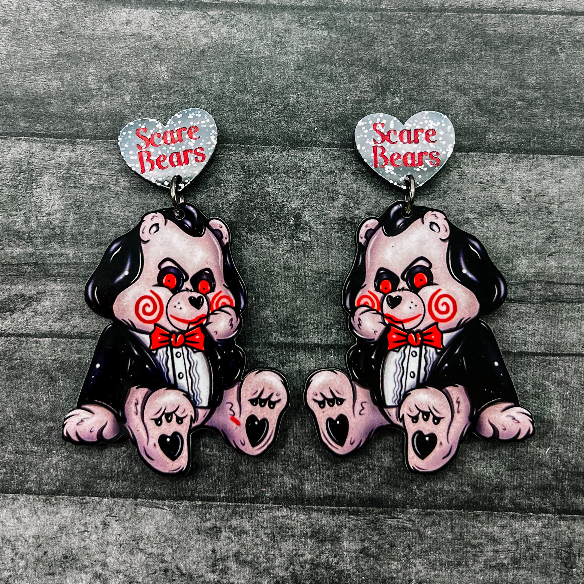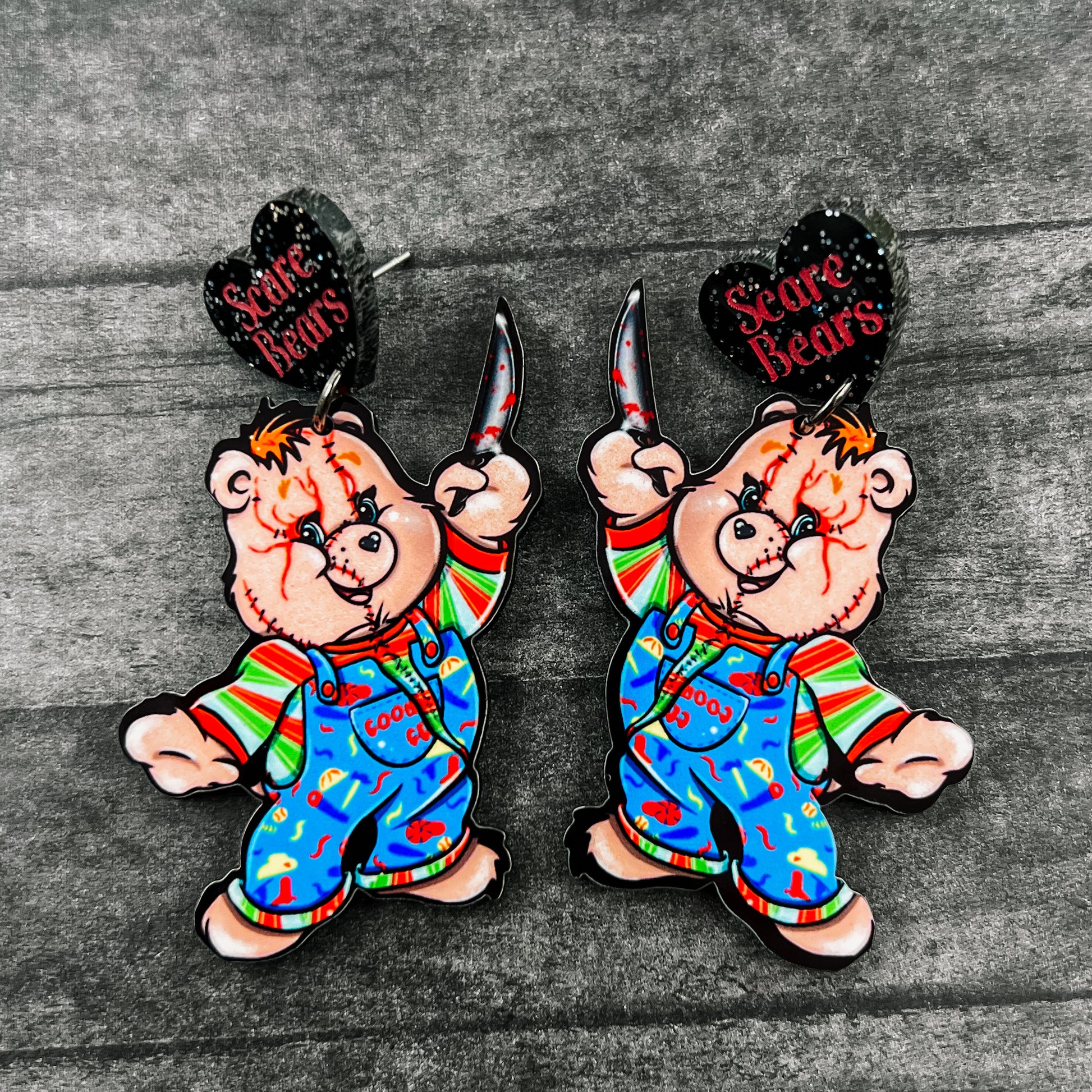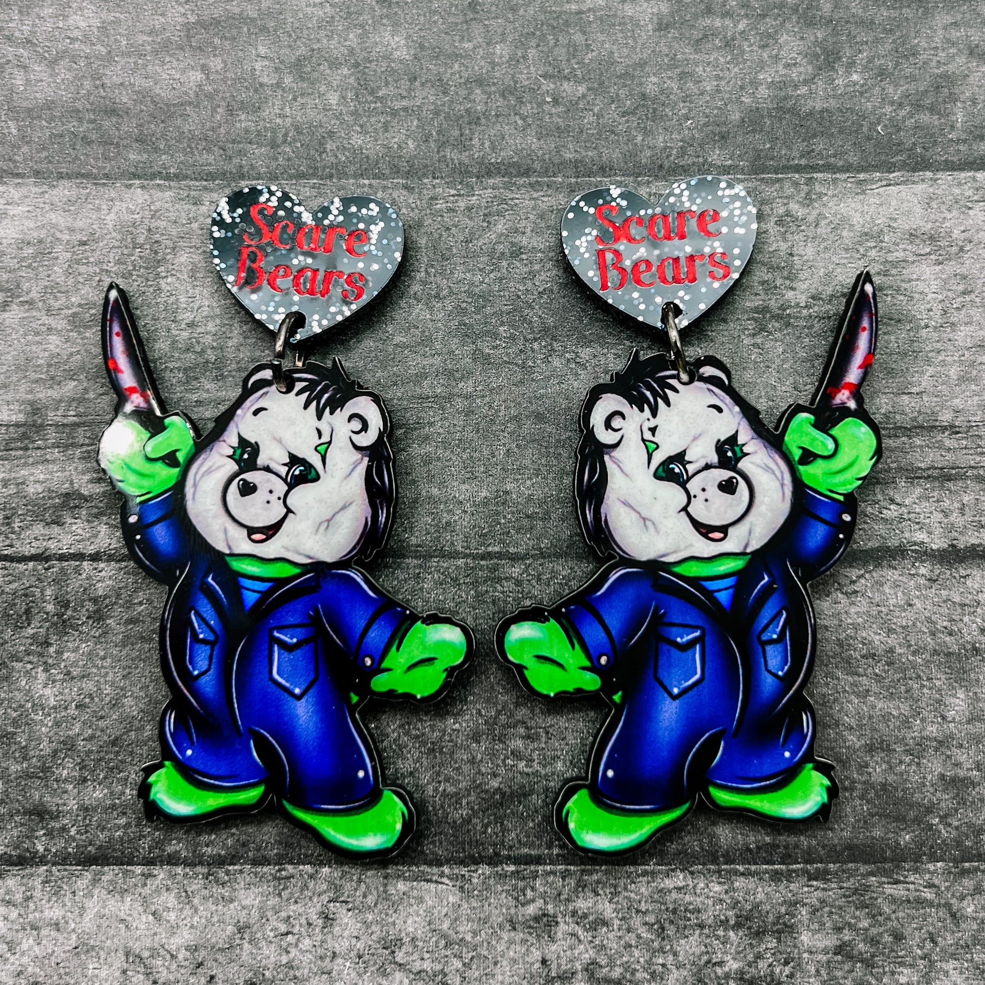 8 of your favorite horror characters as Care Bears! These lightweight Lego earrings measure 2-2.2” long, not including the heart posts.