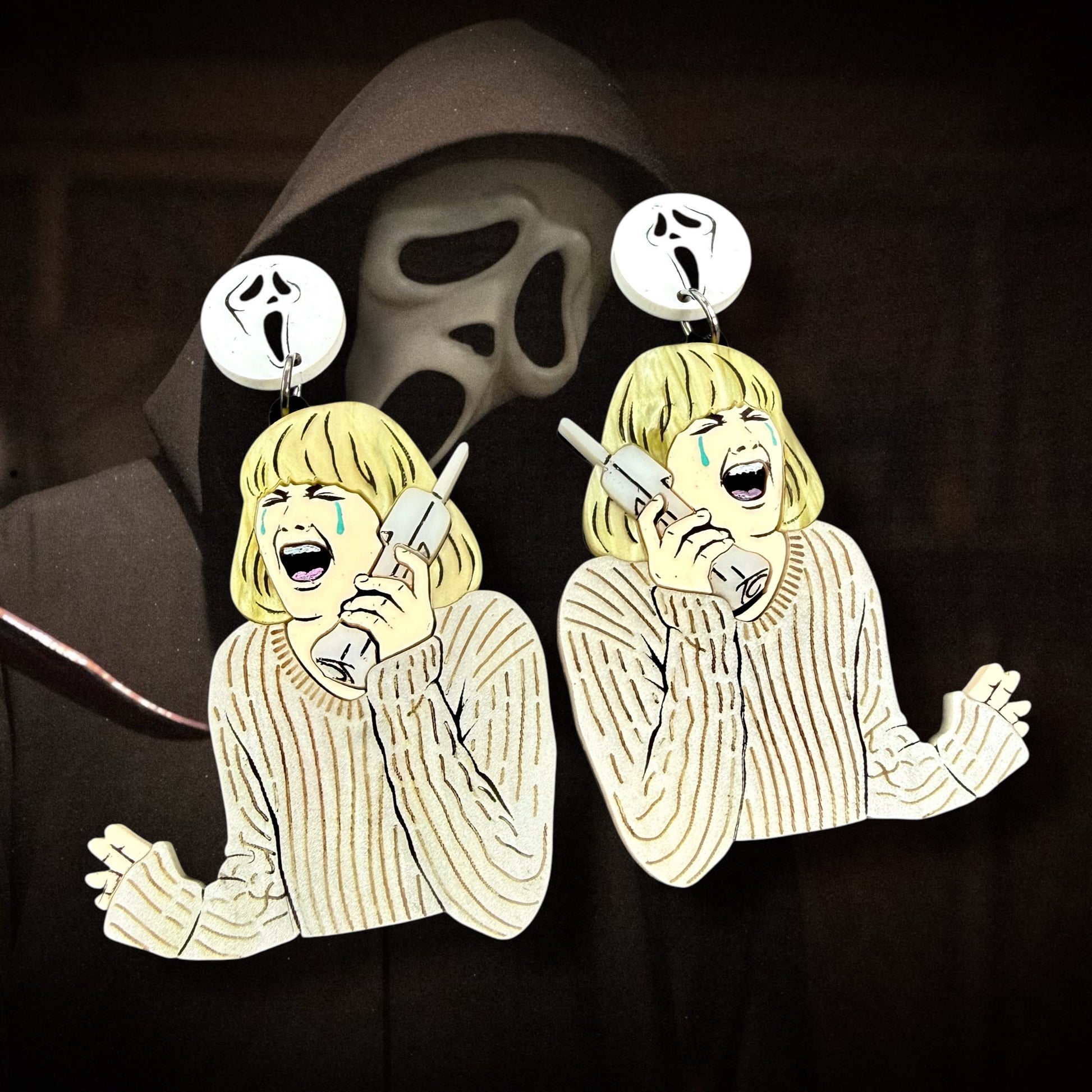 These  Halloween Scream earrings measure 2.25” in diameter, not including the Ghostface posts.
